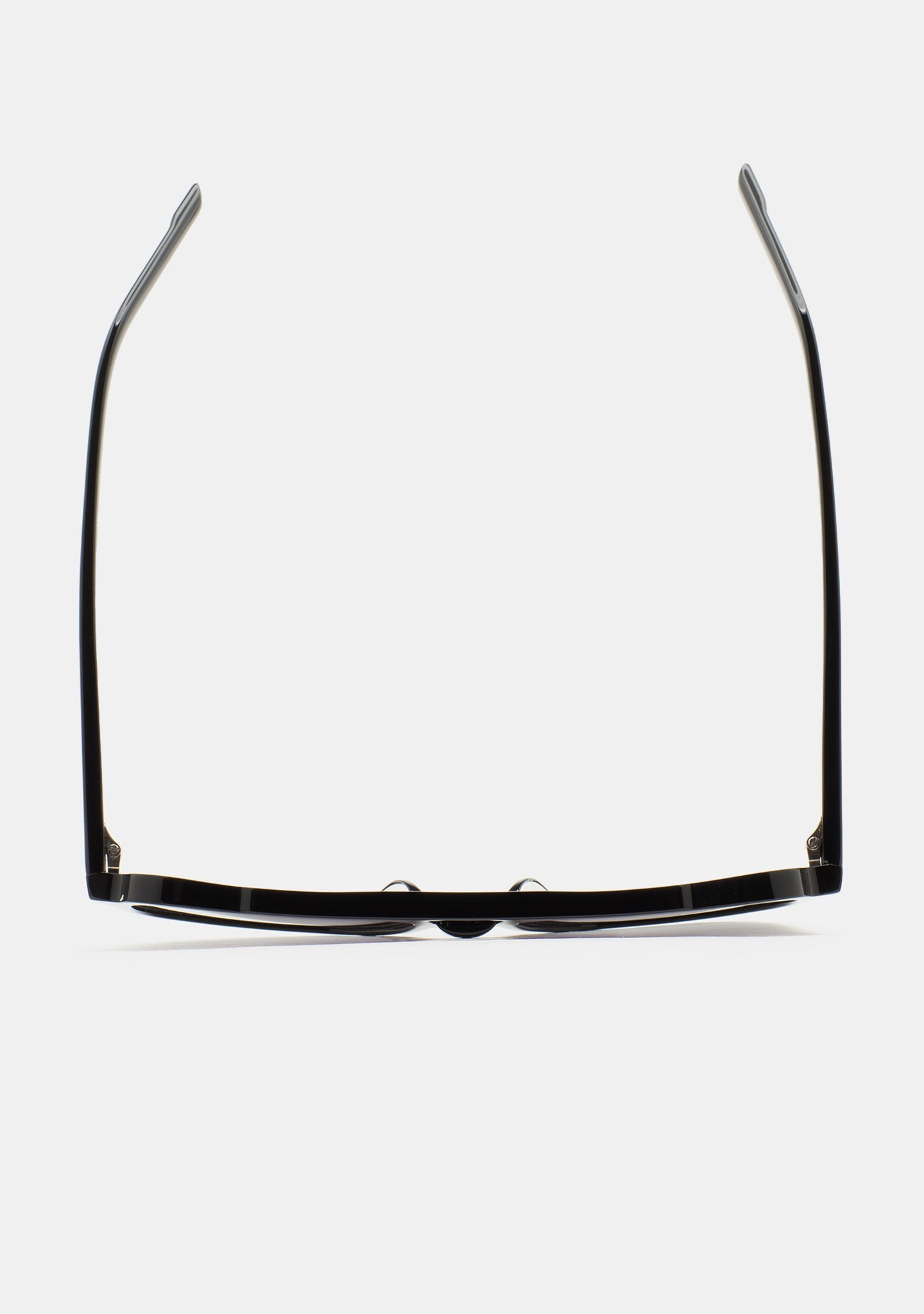 Aviator-Sonnenbrille mit Doppelsteg. Design, das Eleganz und Attitüde vereint. Front und Bügel aus schwarzem Acetat. Graue Verlaufsgläser Basis 2 mit 100 % UV-Schutz und Antireflex-Beschichtung. Gläser der Kategorie 3. Integrierte Nasenpads. Handgefertigt.