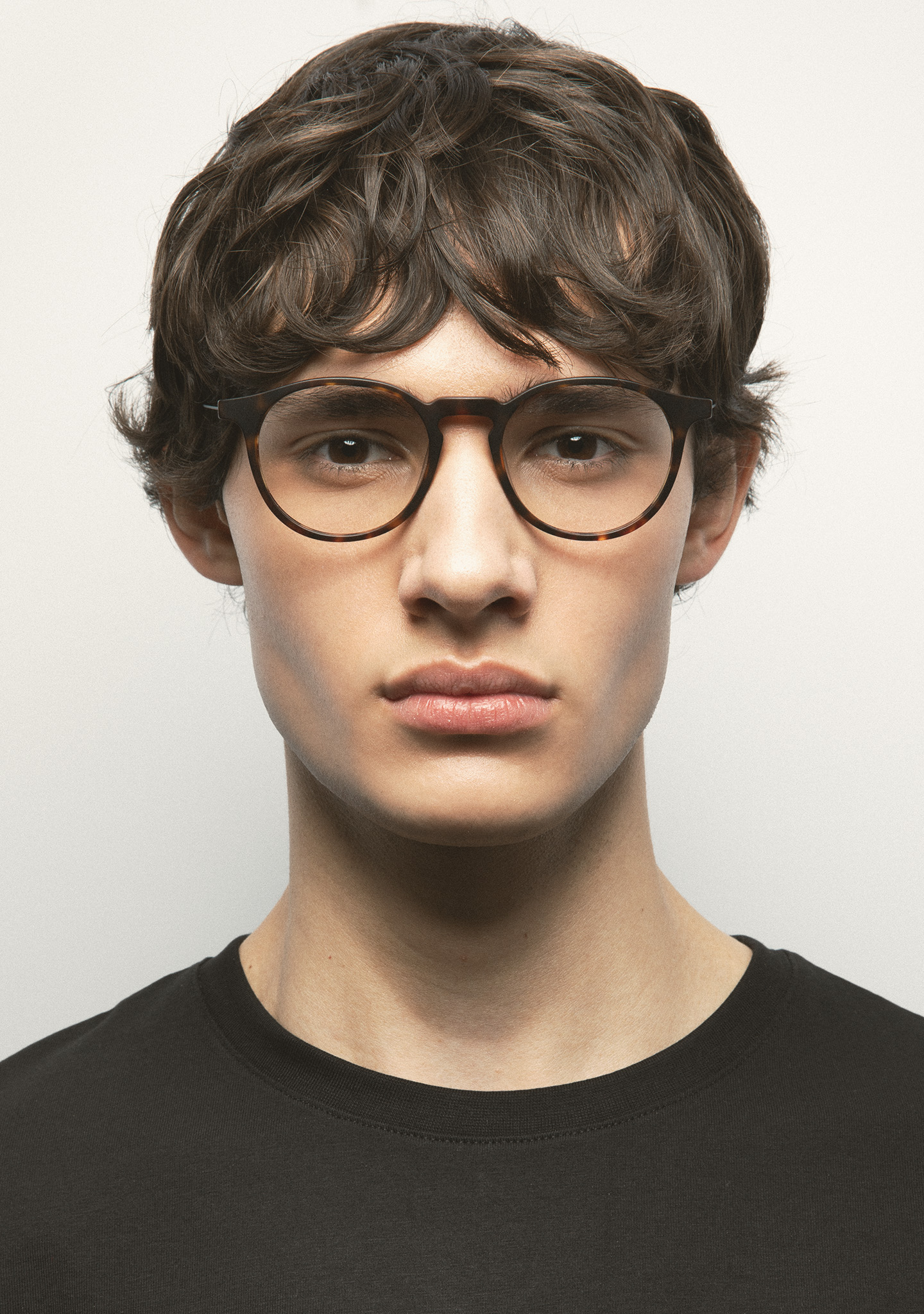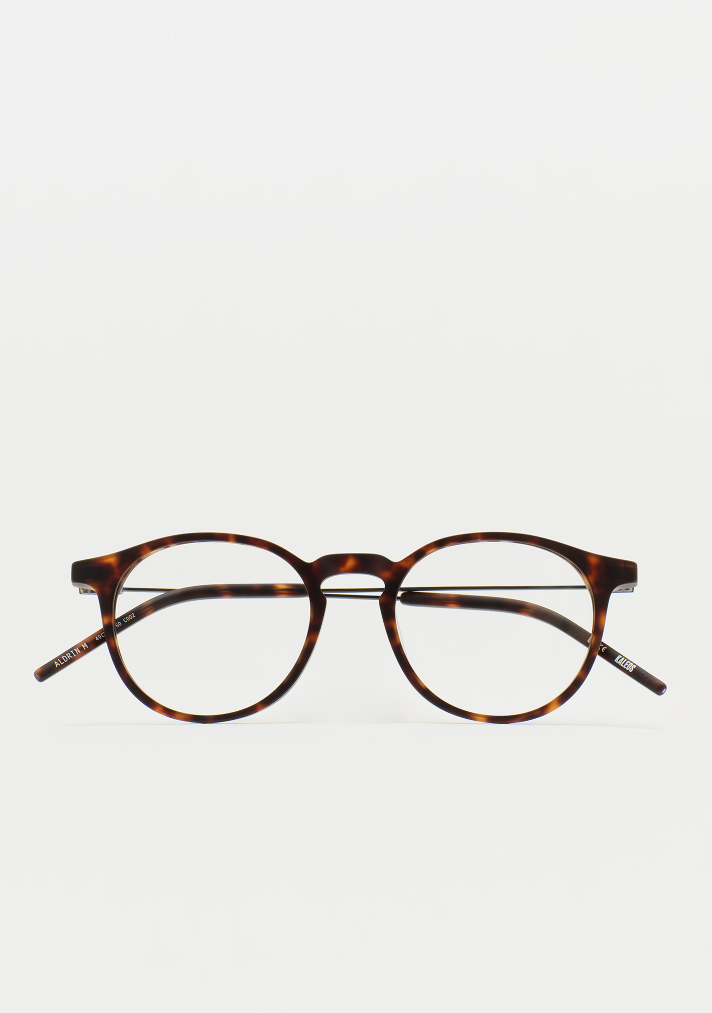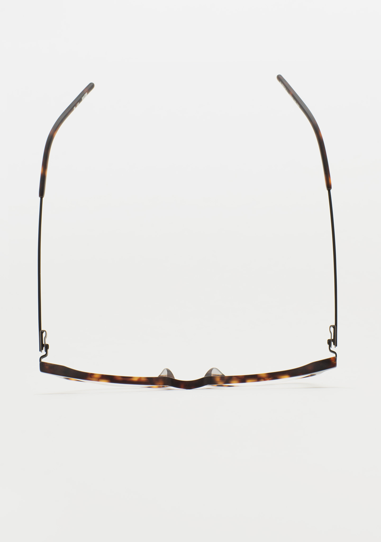 Pantos-Korrekturbrille. Zeitloses Design für den Alltag. Front aus mattem dunkelbraunem Havana-High-Density-Acetat. Bügel aus mattschwarzem Edelstahl mit mattem dunkelbraunem Havana-Acetat an den Bügelenden. Neue schraubenlose Scharnierkonstruktion. Integrierte Acetat-Nasenpads. Handgefertigt. Erhältlich in zwei Größen: mittel (M) und groß (L).