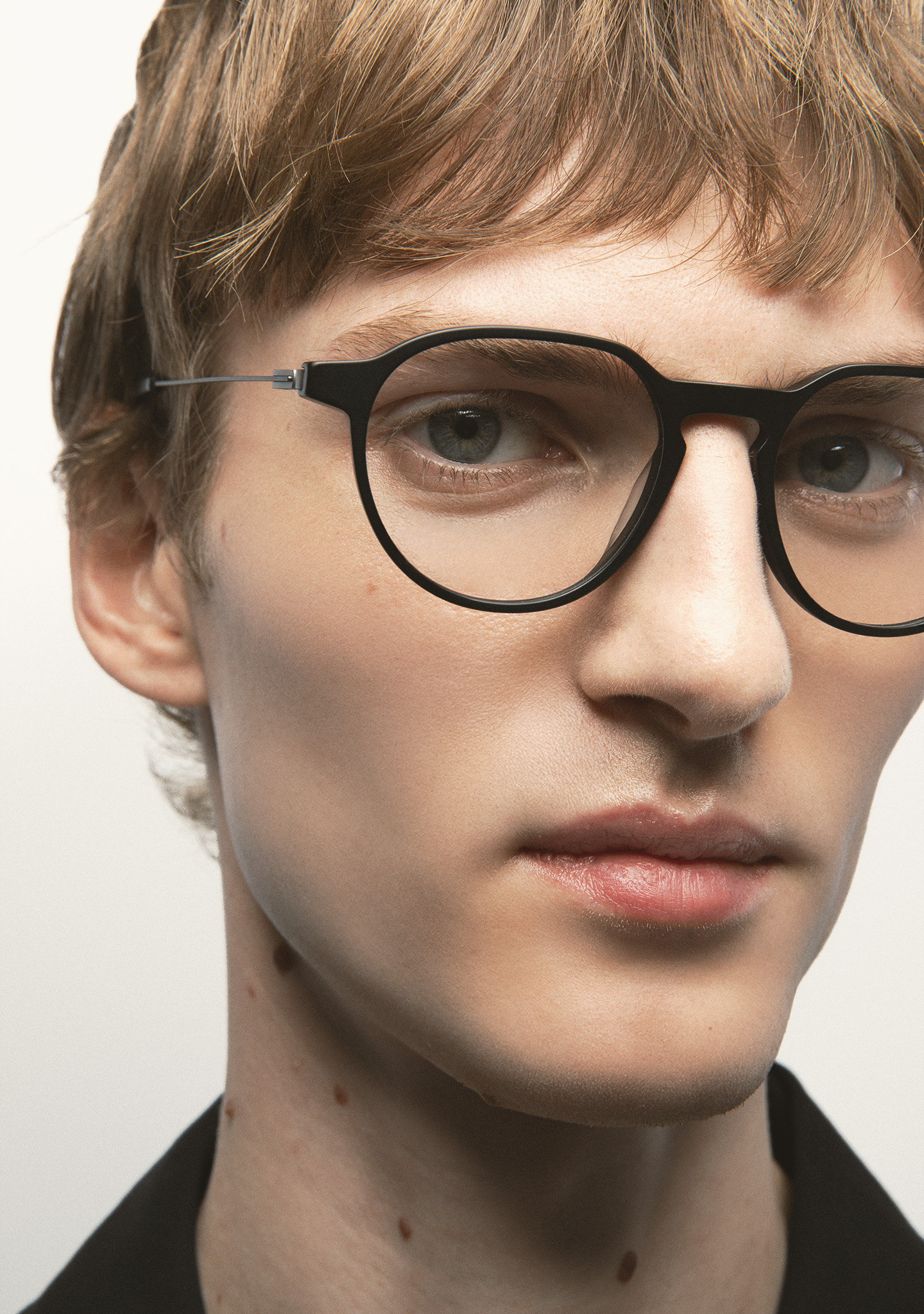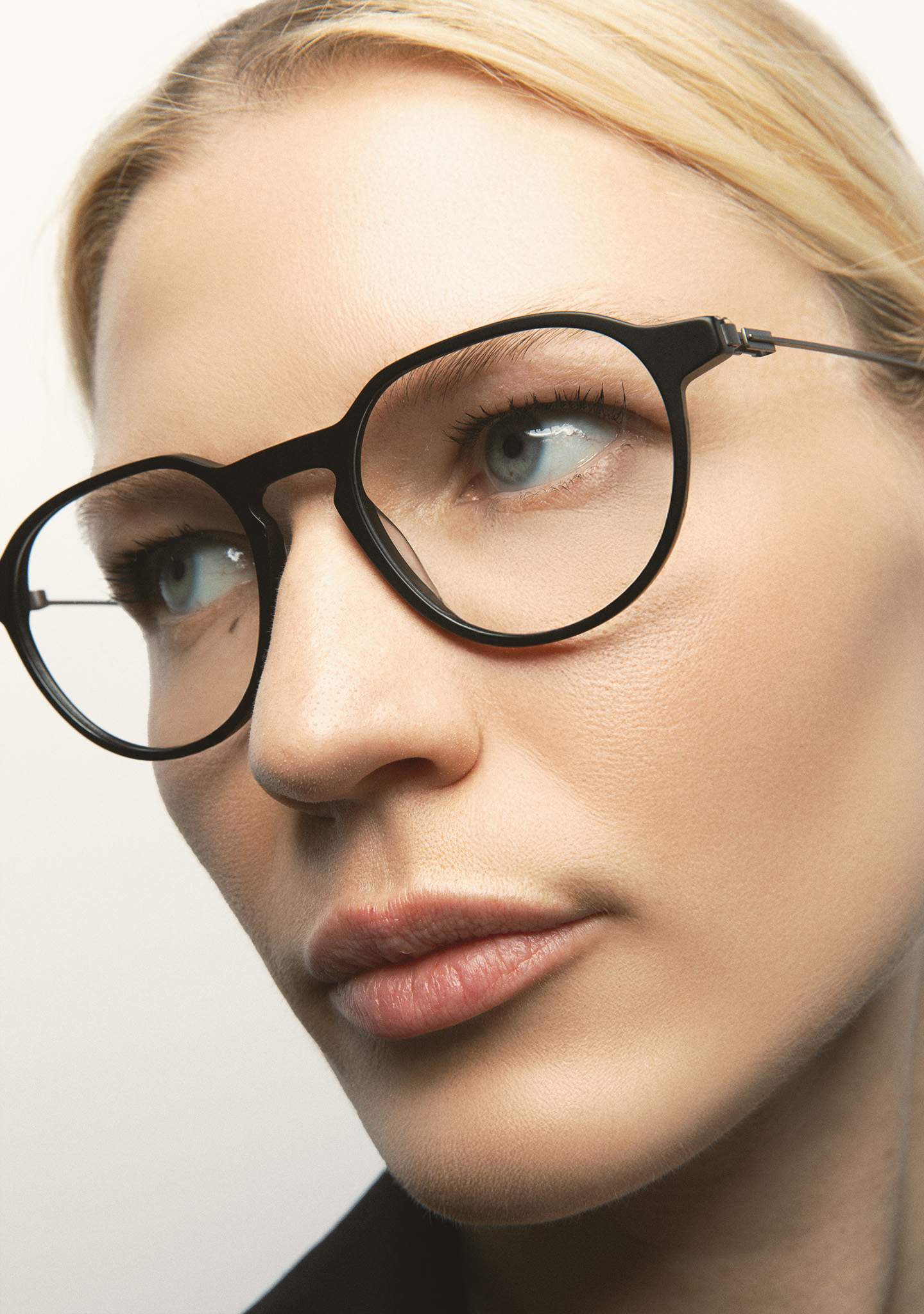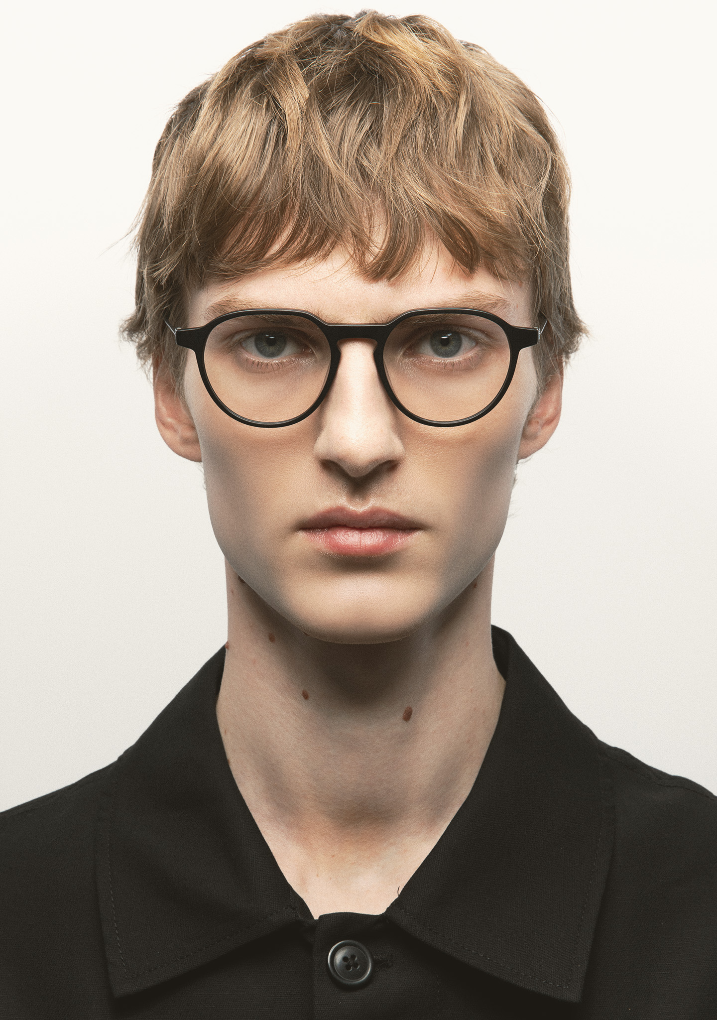 Korrektionsfassung in Pantos-Form. Eine Geometrie, die das Wesentliche neu definiert. Front aus hochdichtem, mattschwarzem Acetat. Bügel aus matt dunkelgrauem Edelstahl mit mattschwarzen Acetatenden. Bügel mit neuer schraubenloser Scharnierkonstruktion. Integrierte Acetat-Nasenpads. Handgefertigt. Erhältlich in zwei Größen: Medium (M) und Large (L).