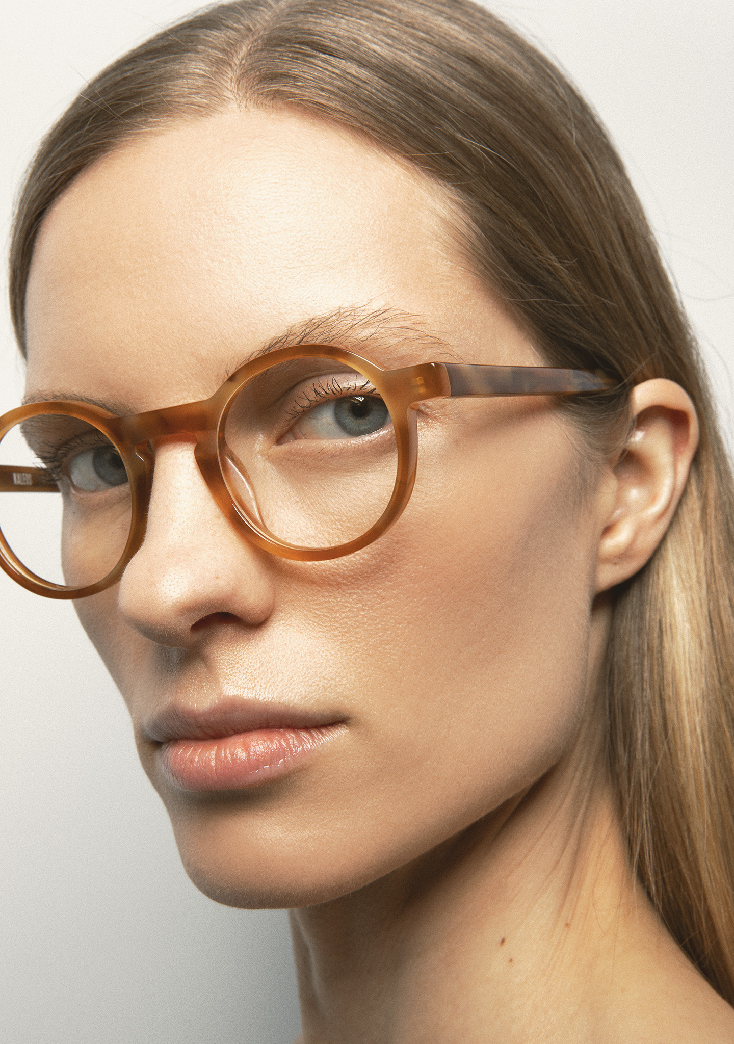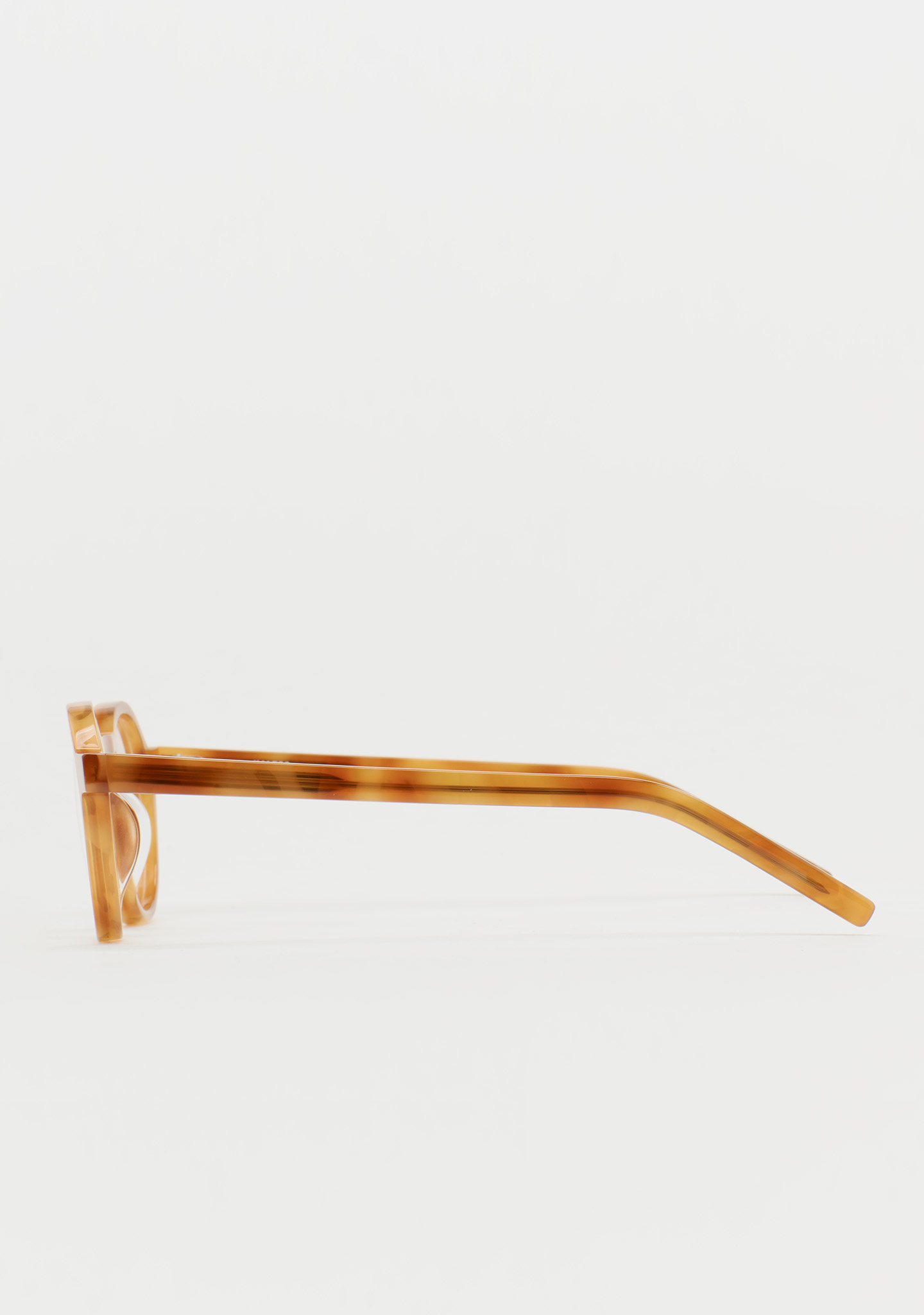 Front und Bügel aus honigfarbenem Havana-Acetat. Integrierte Acetat-Nasenpads. Handgefertigt.