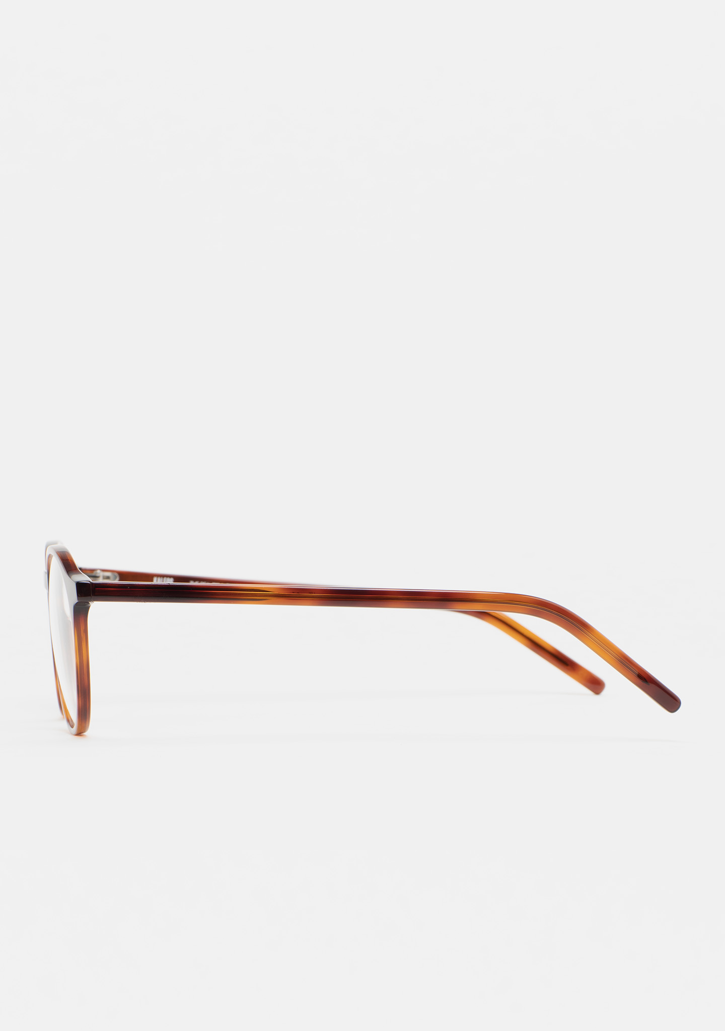 Sehhilfe in Pantos-Form. Front und Bügel aus mattem dunkelbraunem Havana-High-Density-Acetat. Integrierte Acetat-Nasenpads. Handgefertigt. Erhältlich in zwei Größen: Medium (M) und Large (L).