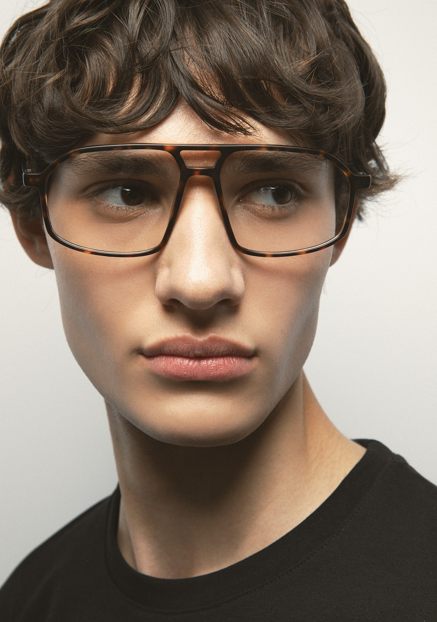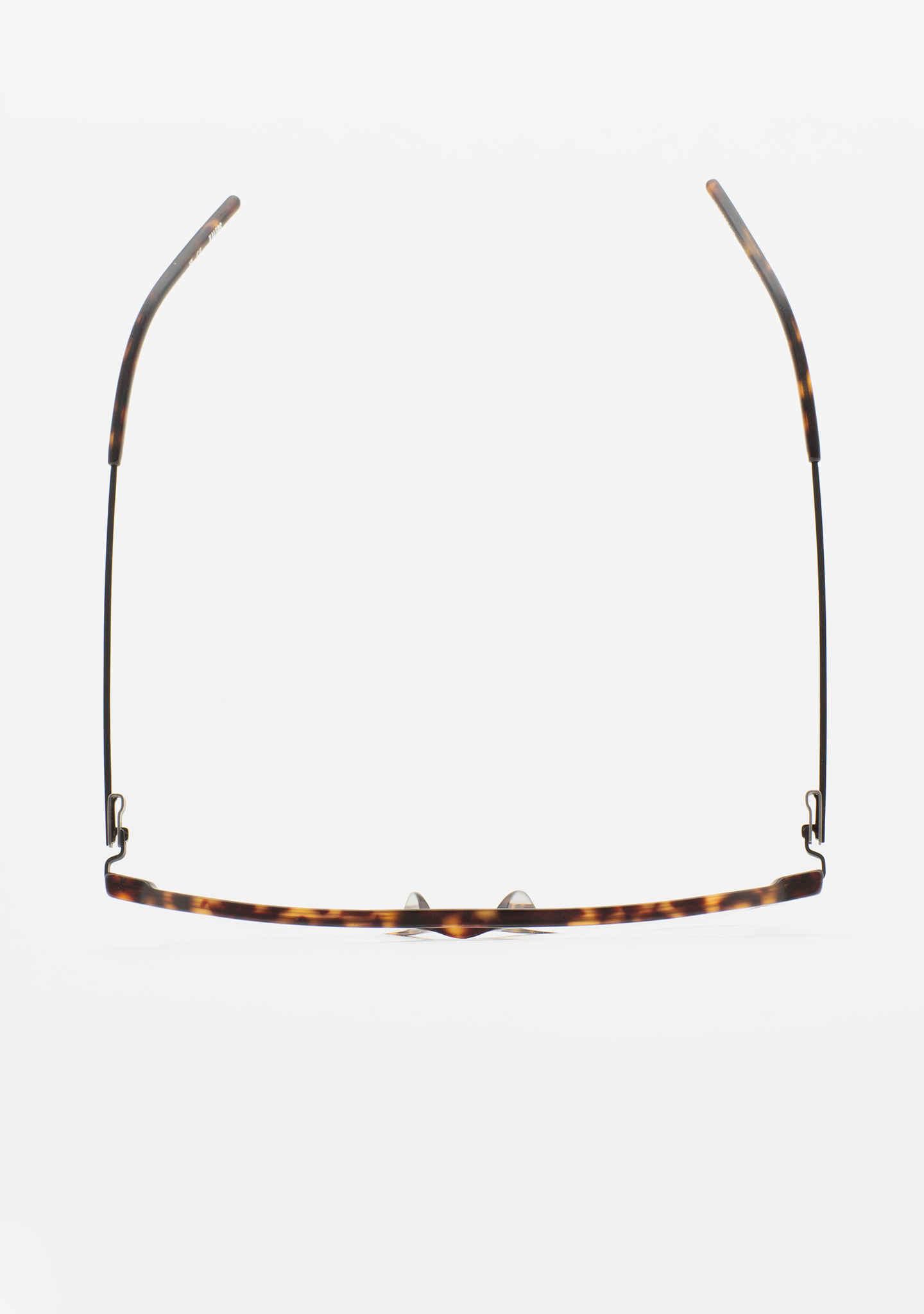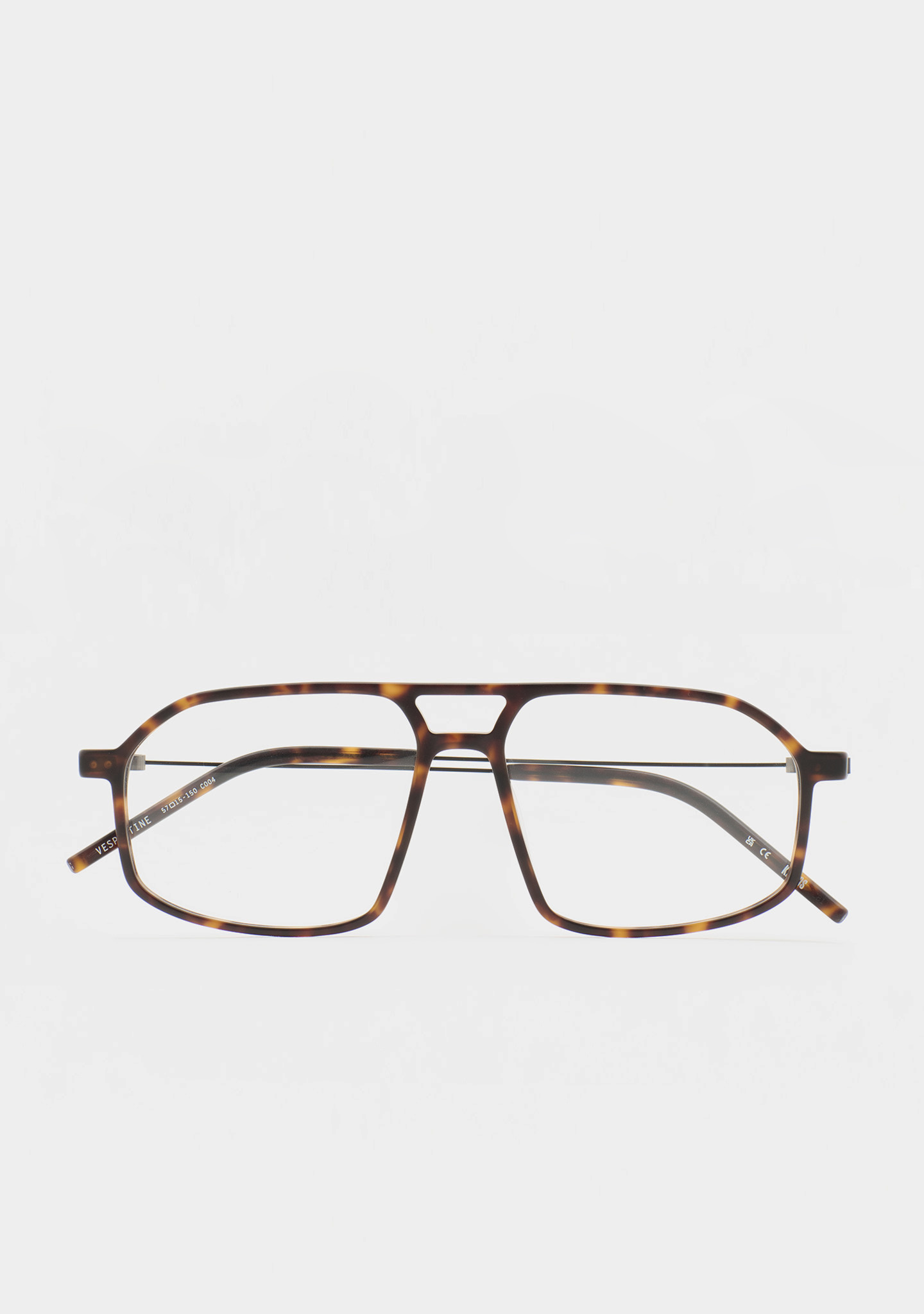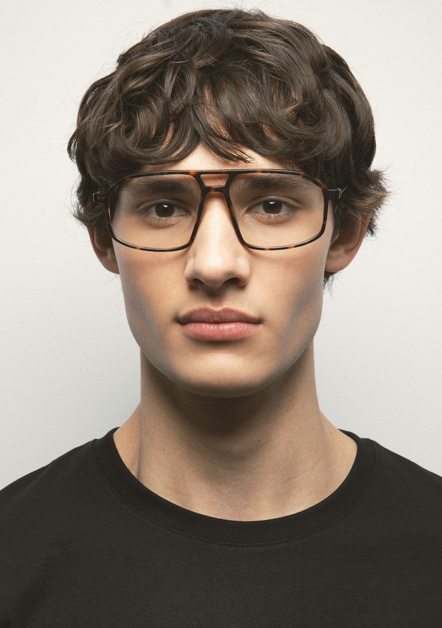 Aviator-Korrekturbrille mit Doppelsteg. Visuelle Architektur für Ihren Blick. Front aus mattem dunkelbraunem Havana-High-Density-Acetat. Bügel aus mattschwarzem Edelstahl mit dunkelbraunen Havana-Acetat-Enden. Neue schraubenlose Scharnierkonstruktion. Integrierte Acetat-Nasenpads. Handgefertigt. Erhältlich in zwei Größen: mittel (M) und groß (L).