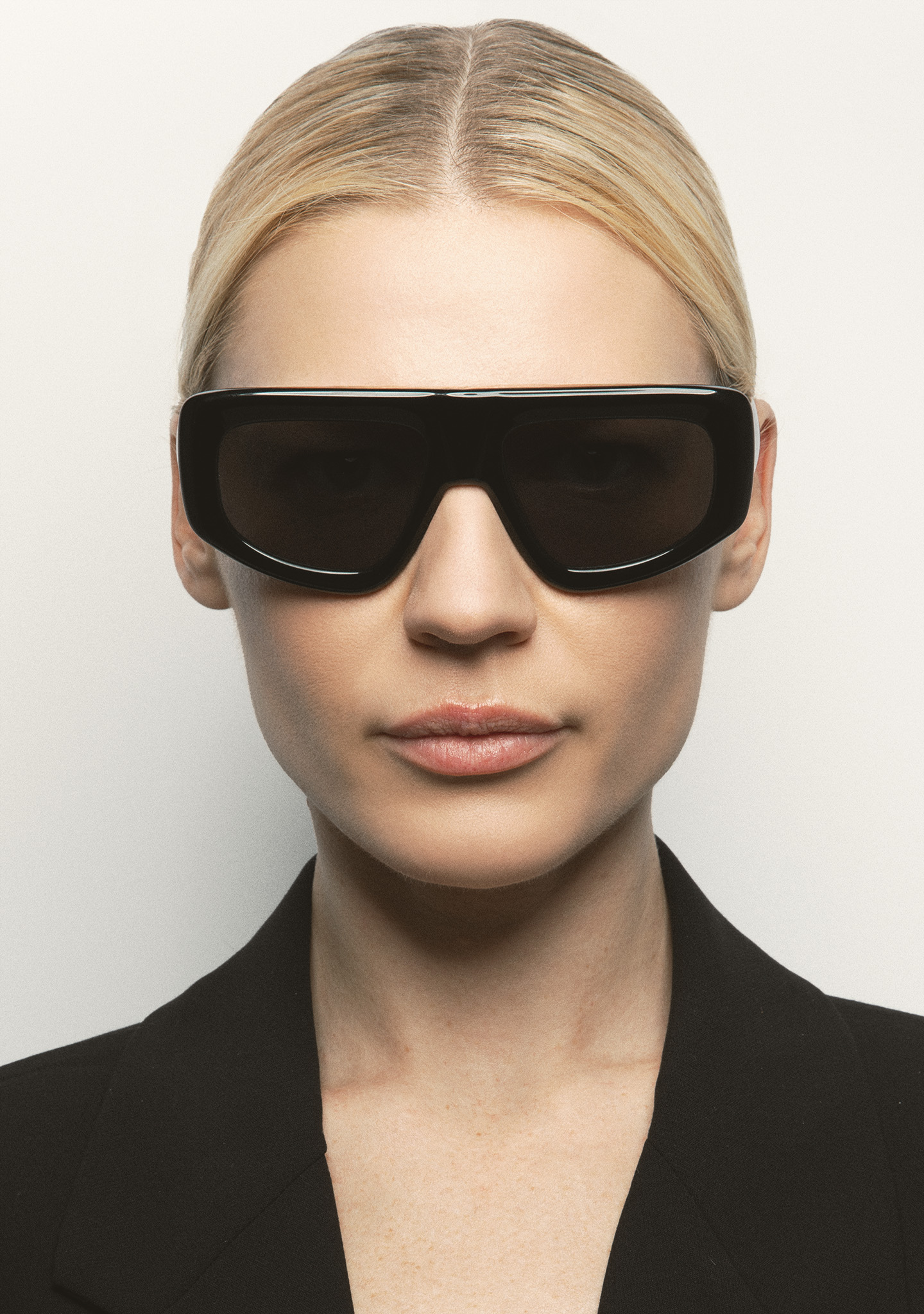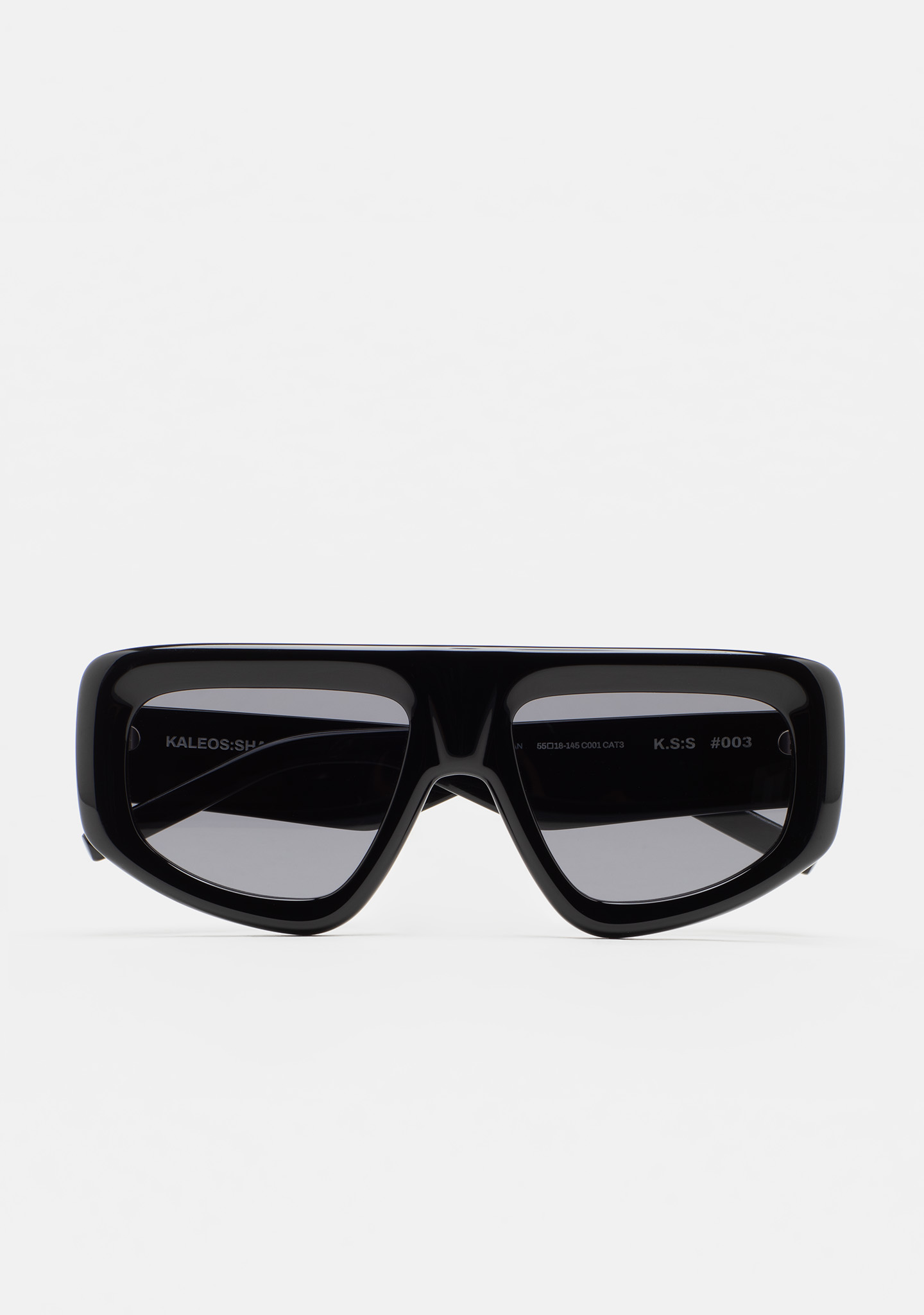 KALEOS SHAPES: SONNENBRILLE IN LIMITIERTER AUFLAGE. 250 STÜCK. GEFERTIGT IN JAPAN. #003. Kühn gestaltete, geometrische Sonnenbrillen mit kraftvoller Präsenz, die modernes Design mit präziser Formensprache verbinden. Aus Acetat gefertigt, zeigt das Gestell gefräste Details, die sanfte Volumenschwankungen hervorheben. Ein echtes Brillenstück mit Tiefe und Charakter, ausgestattet mit flachen Base-2-Gläsern, die seine architektonische Silhouette betonen.