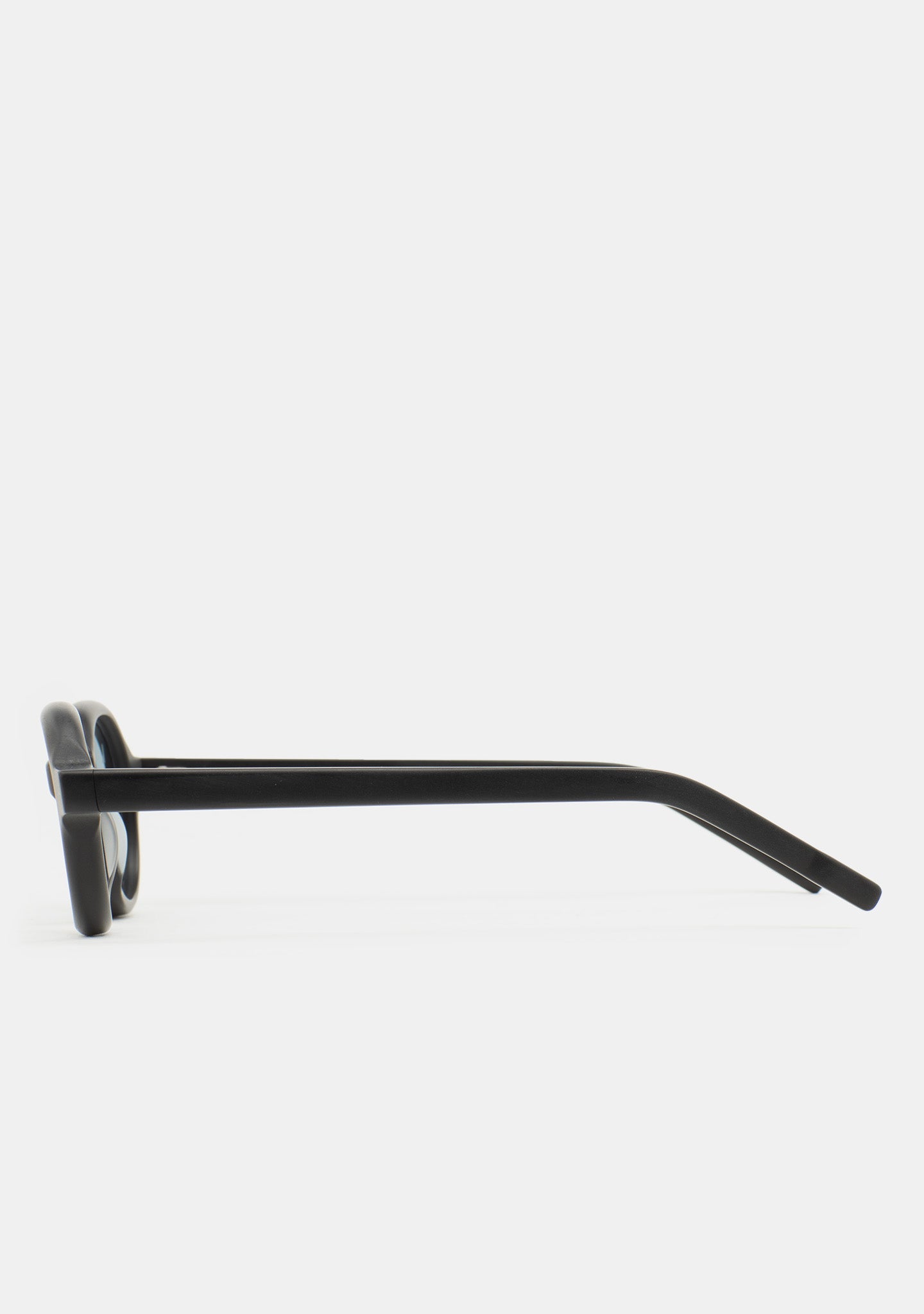 Oval-shaped sunglasses. Modern design with subtle contours that make the difference. Front and temples in matte black acetate. Blue photochromic lenses base 2 with UV protection and anti-reflective treatment. Category 1–3 lenses. Integrated acetate nose pads. Handmade.
