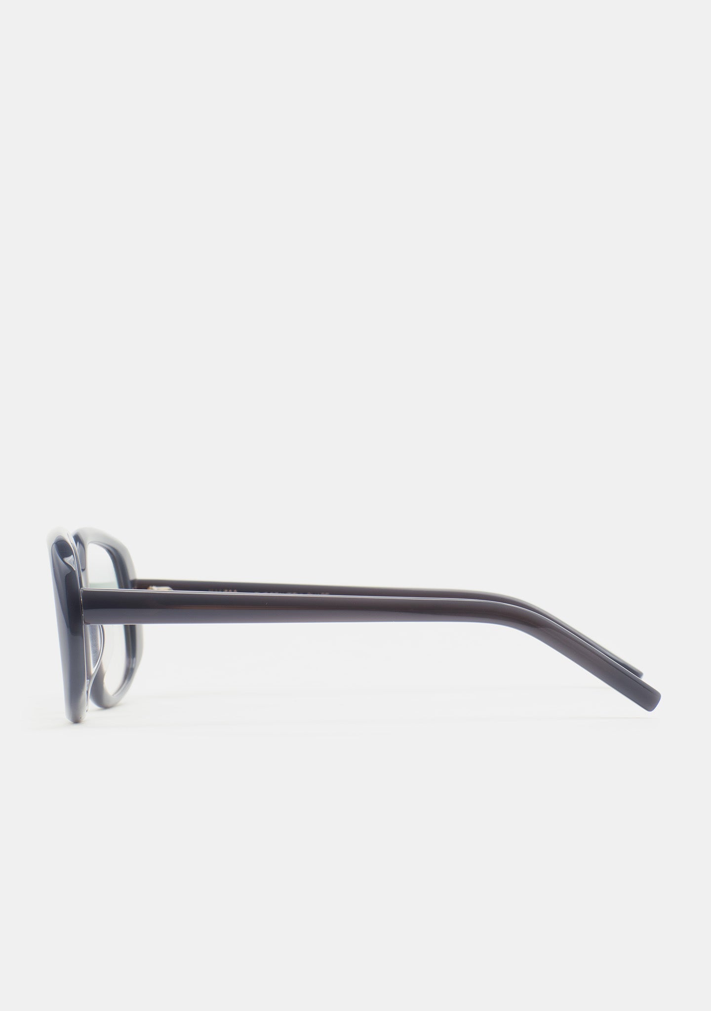 Rectangular sunglasses. Modern design that combines shape and function. Front and temples in translucent bluish-gray acetate. Blue lens base 2 with UV protection and anti-reflective coating. Lens Category 1-3. Incorporated acetate nose pads. Handmade.