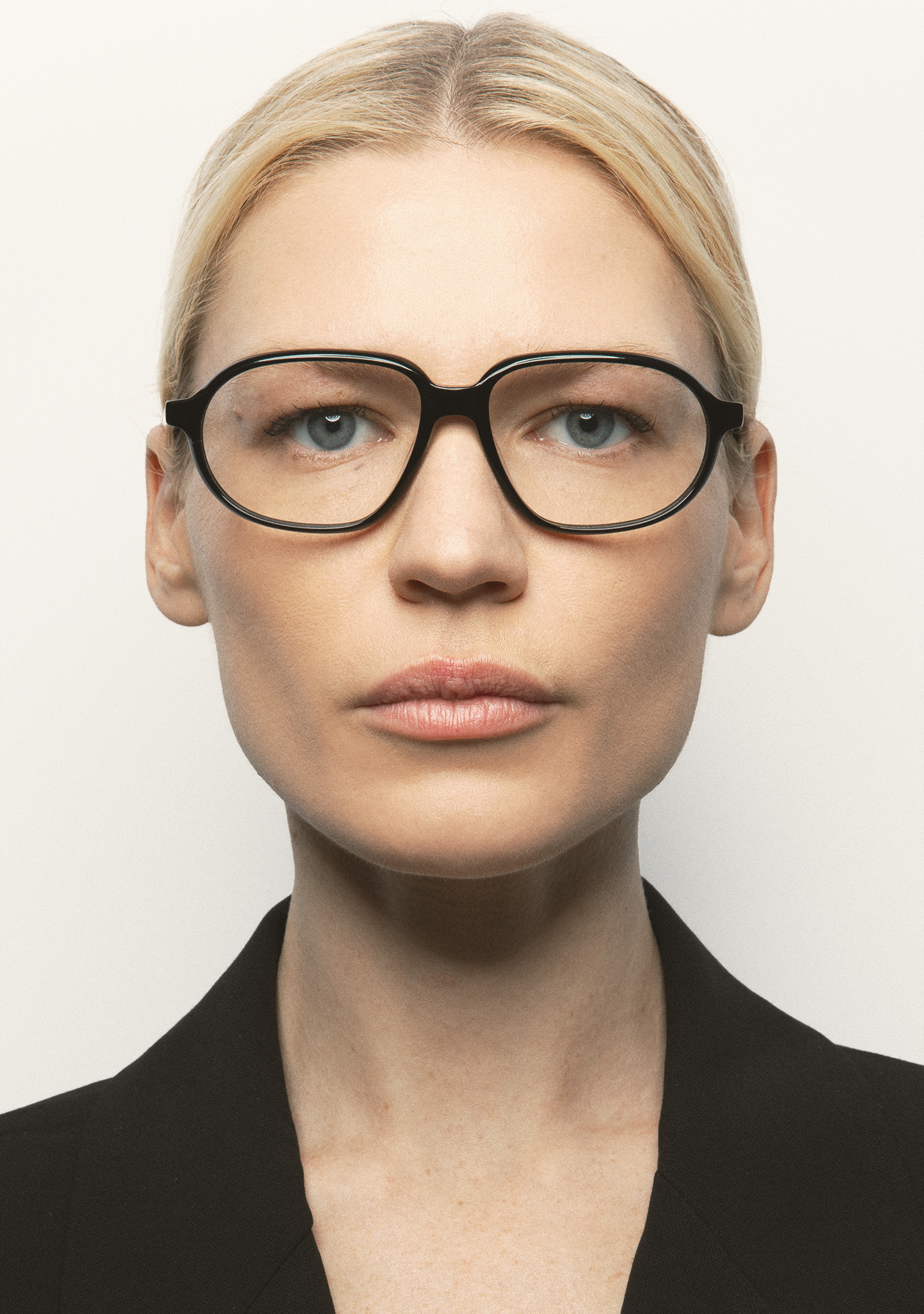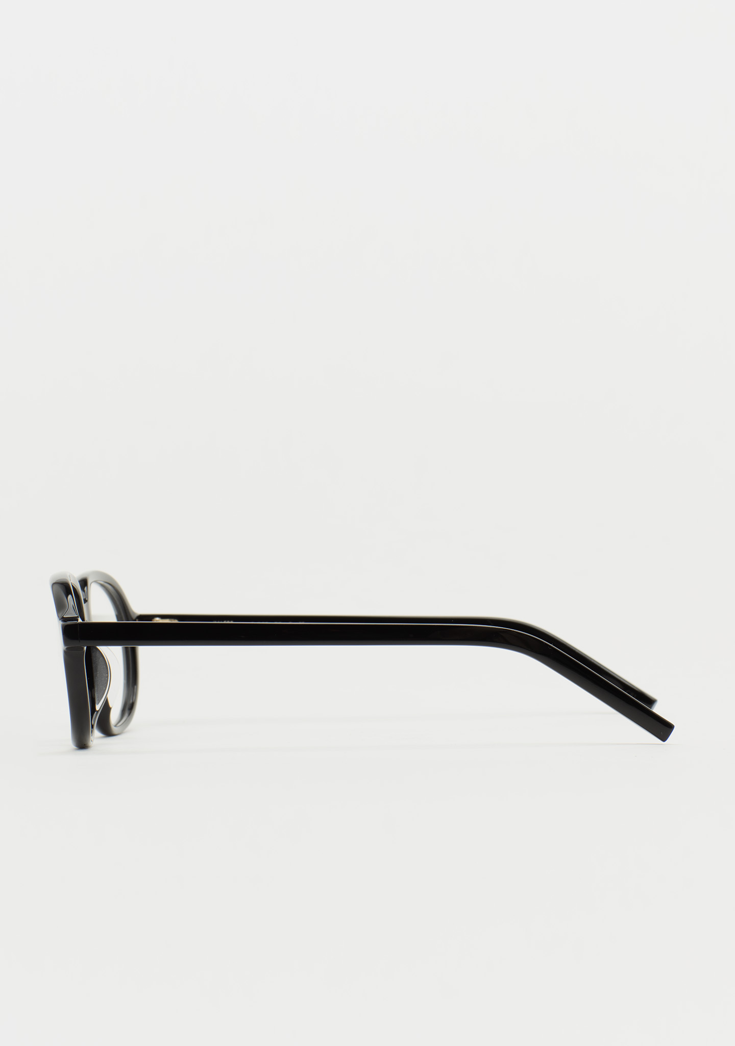 Aviator-shaped eyeglasses. Minimalism that leaves a mark. Black acetate front and temples. Integrated acetate nose pads. Handmade.