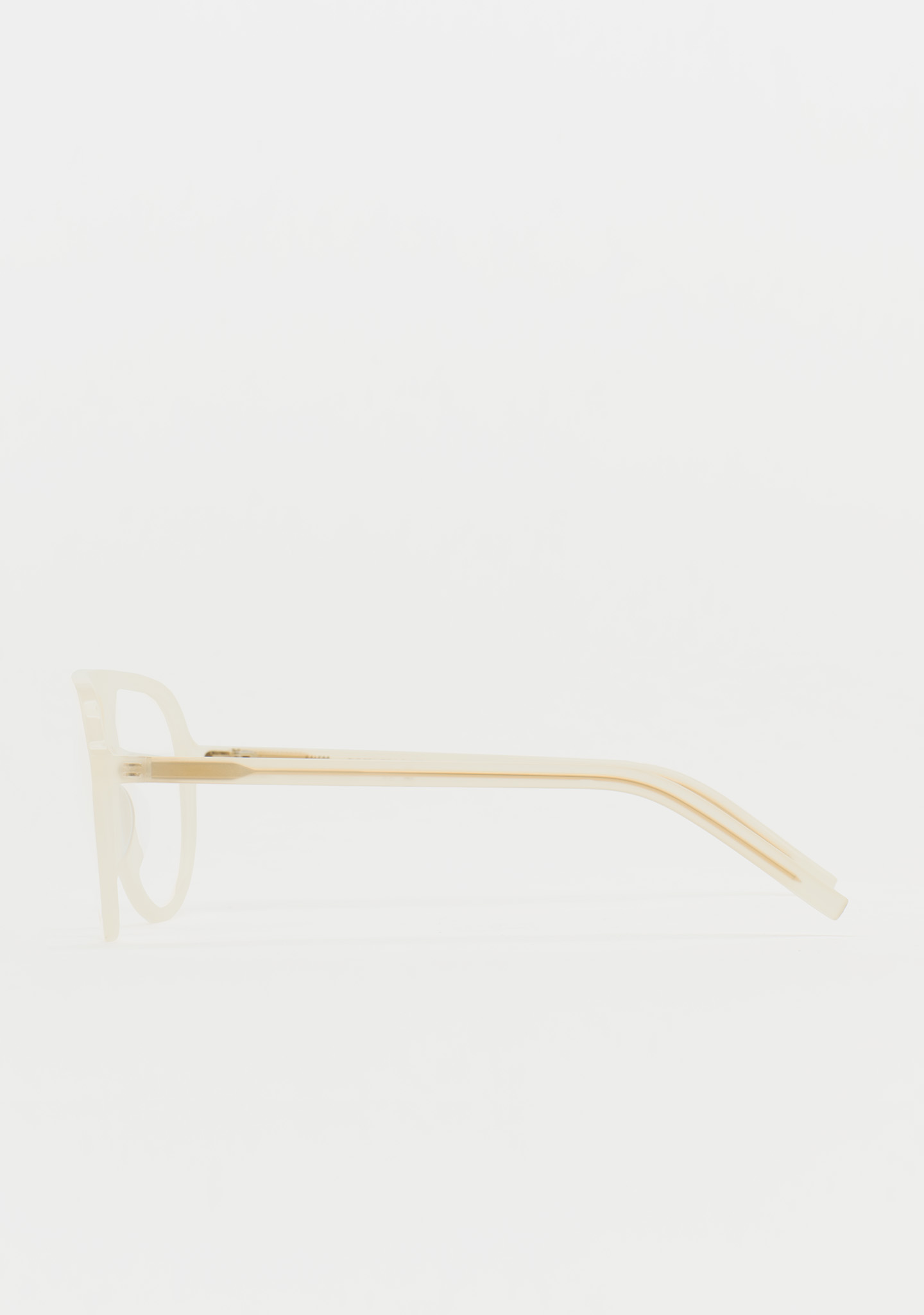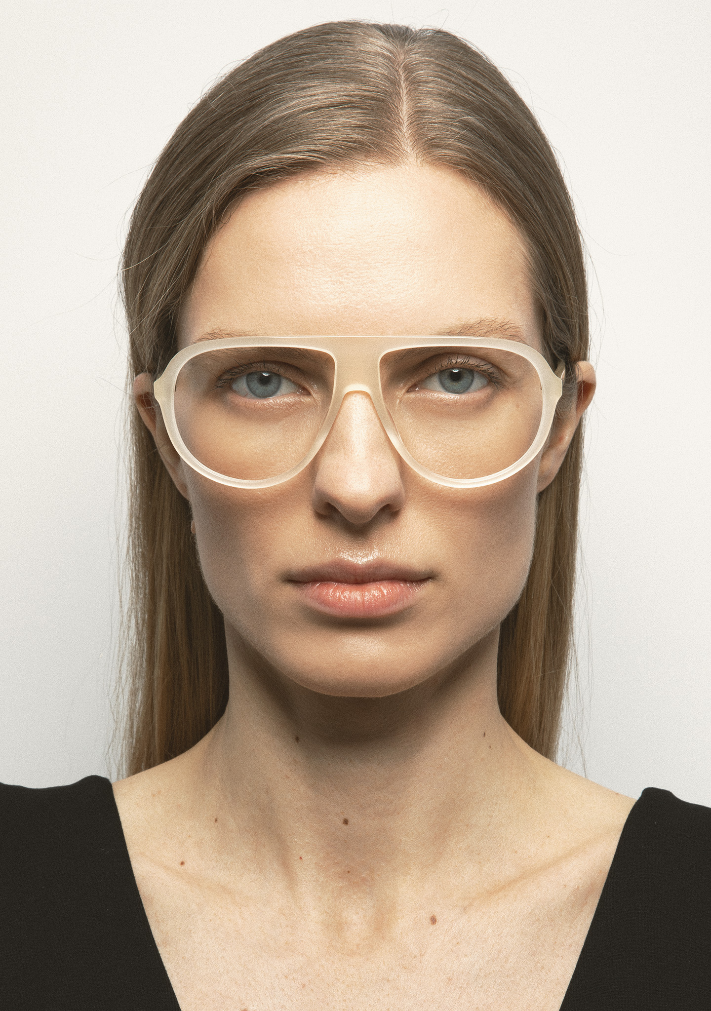 Aviator eyeglasses. Minimalism that doesn t go unnoticed. Front and temples in high-density light translucent beige acetate. Integrated acetate nose pads. Handmade.