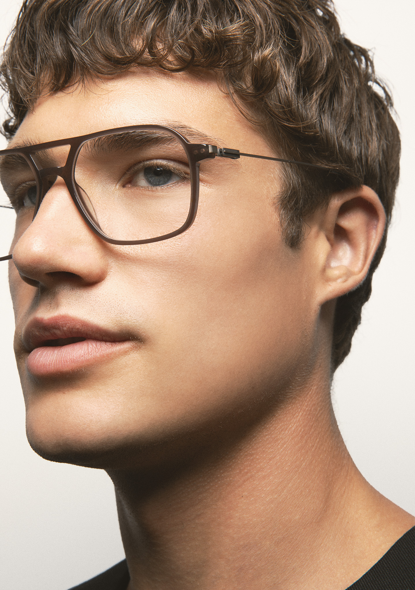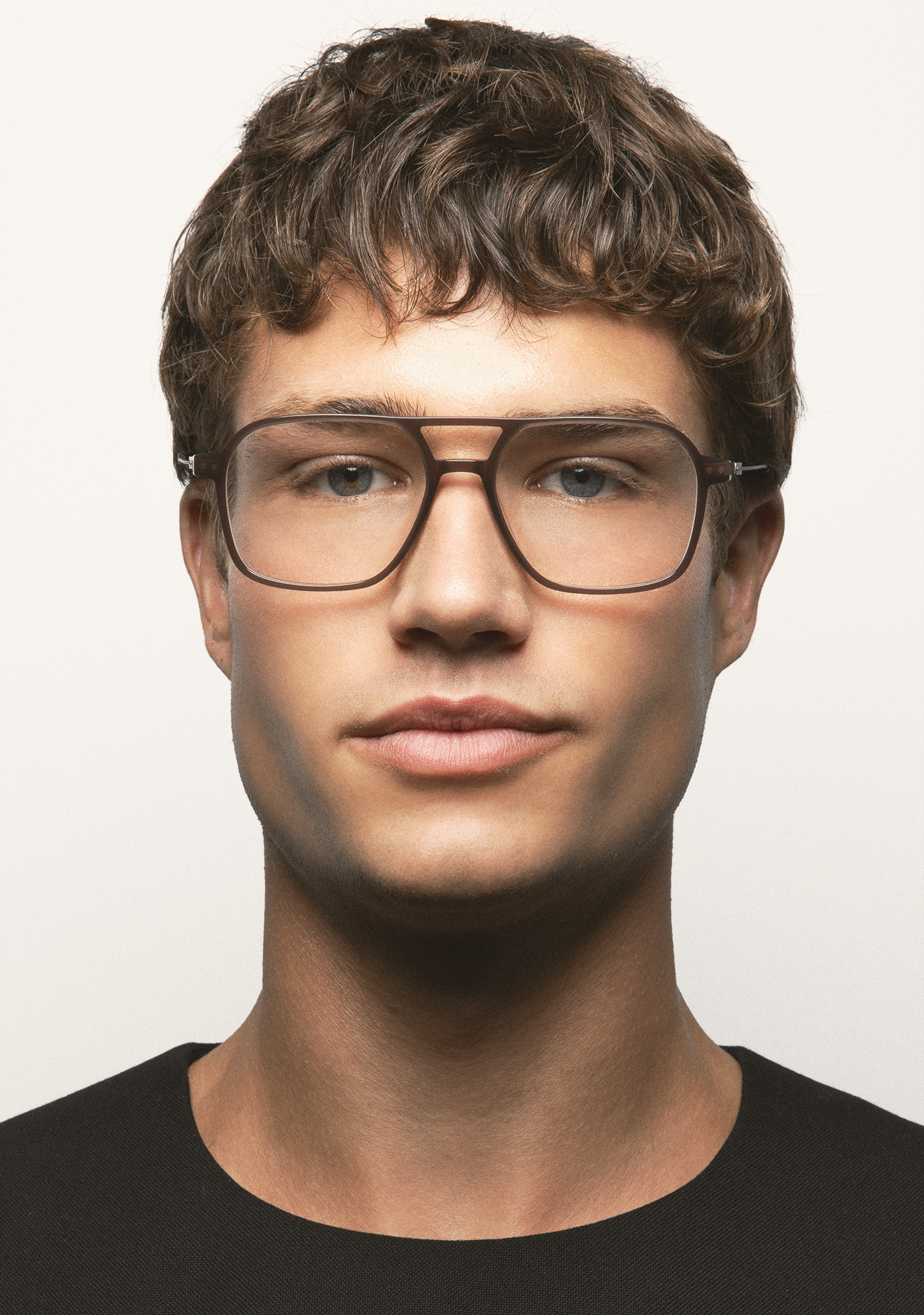 Rectangular optical glasses with double bridge. High-density translucent dark brown acetate frame front. Brown stainless steel temples with dark brown translucent tips. Temples with the new screwless hinge. Built-in acetate nose pads. Handmade. Available in two sizes: medium (M) and large (L).