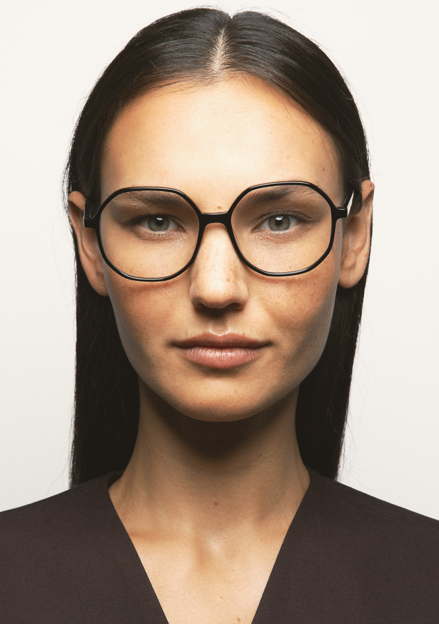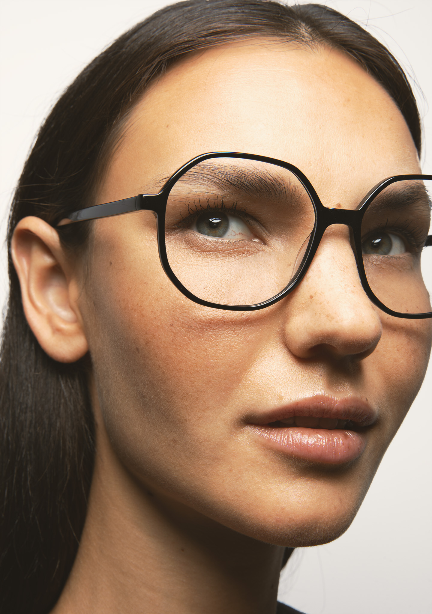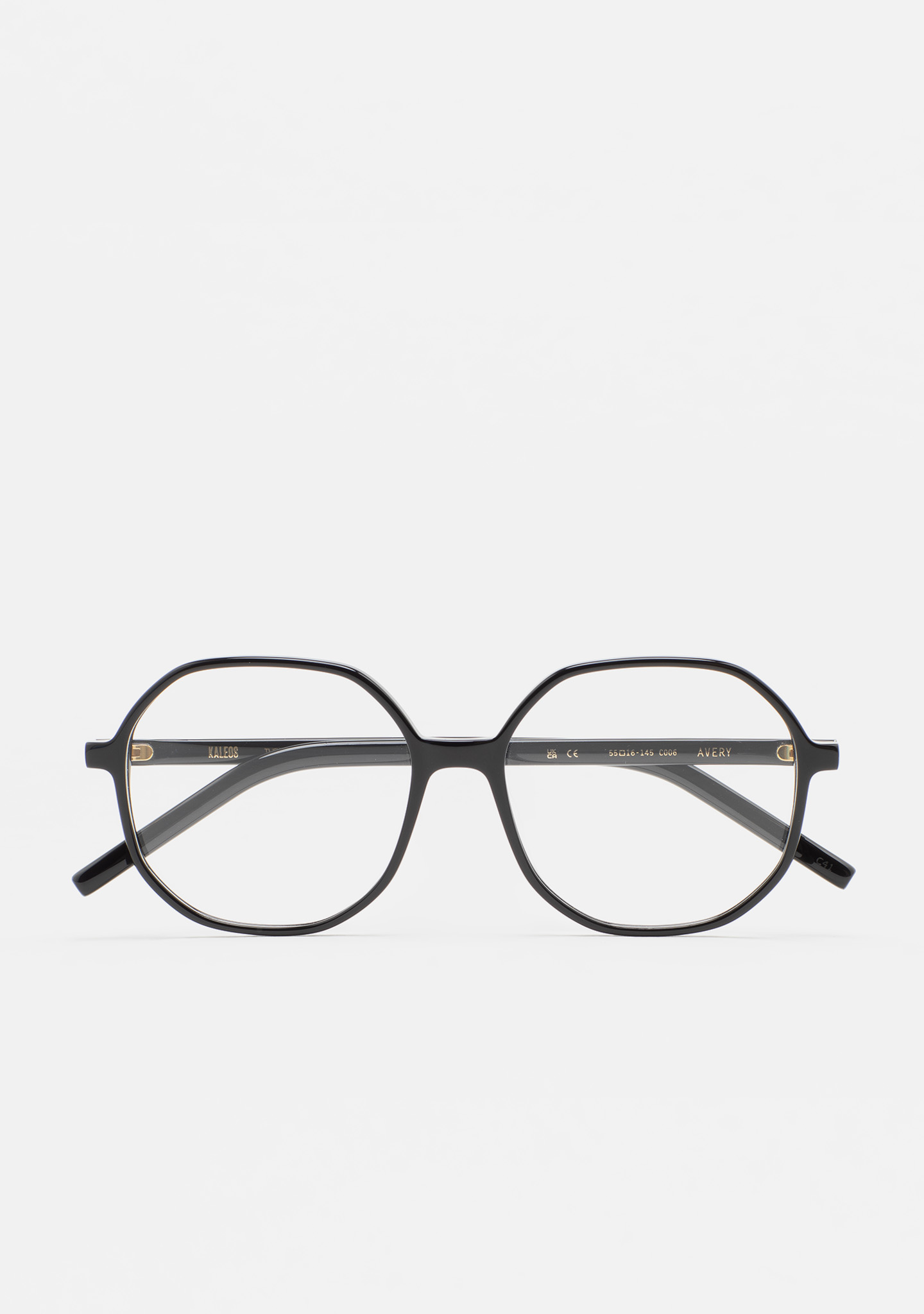 Gafa de ver de forma octagonal. Frontal y varillas de acetato high density negro. Plaquetas de acetato incorporadas. Hecha a mano.