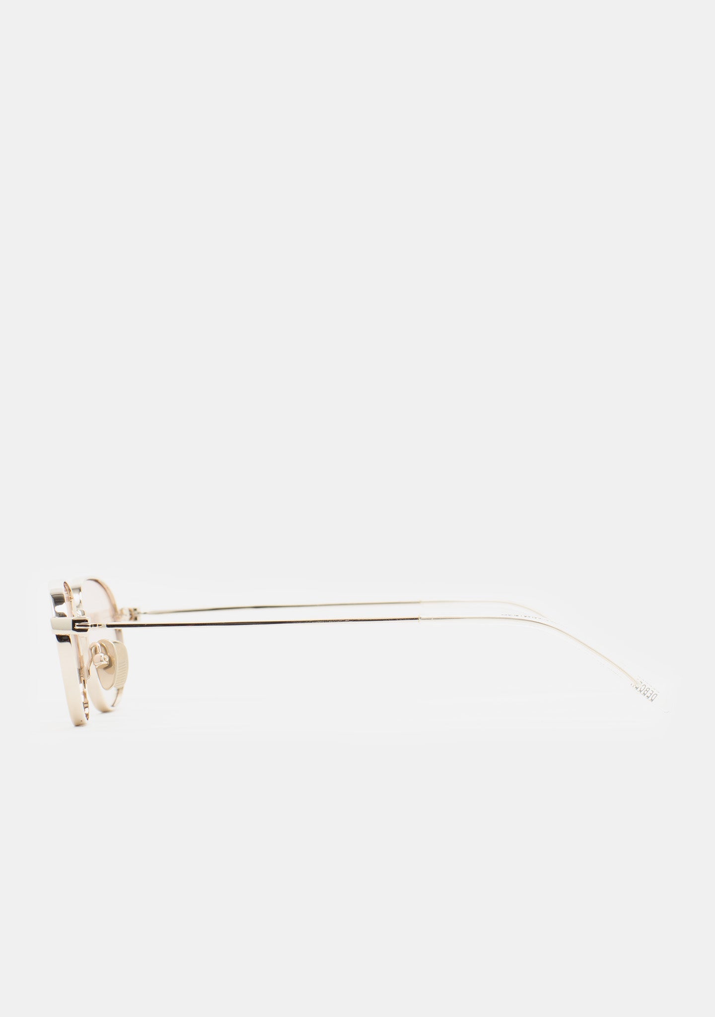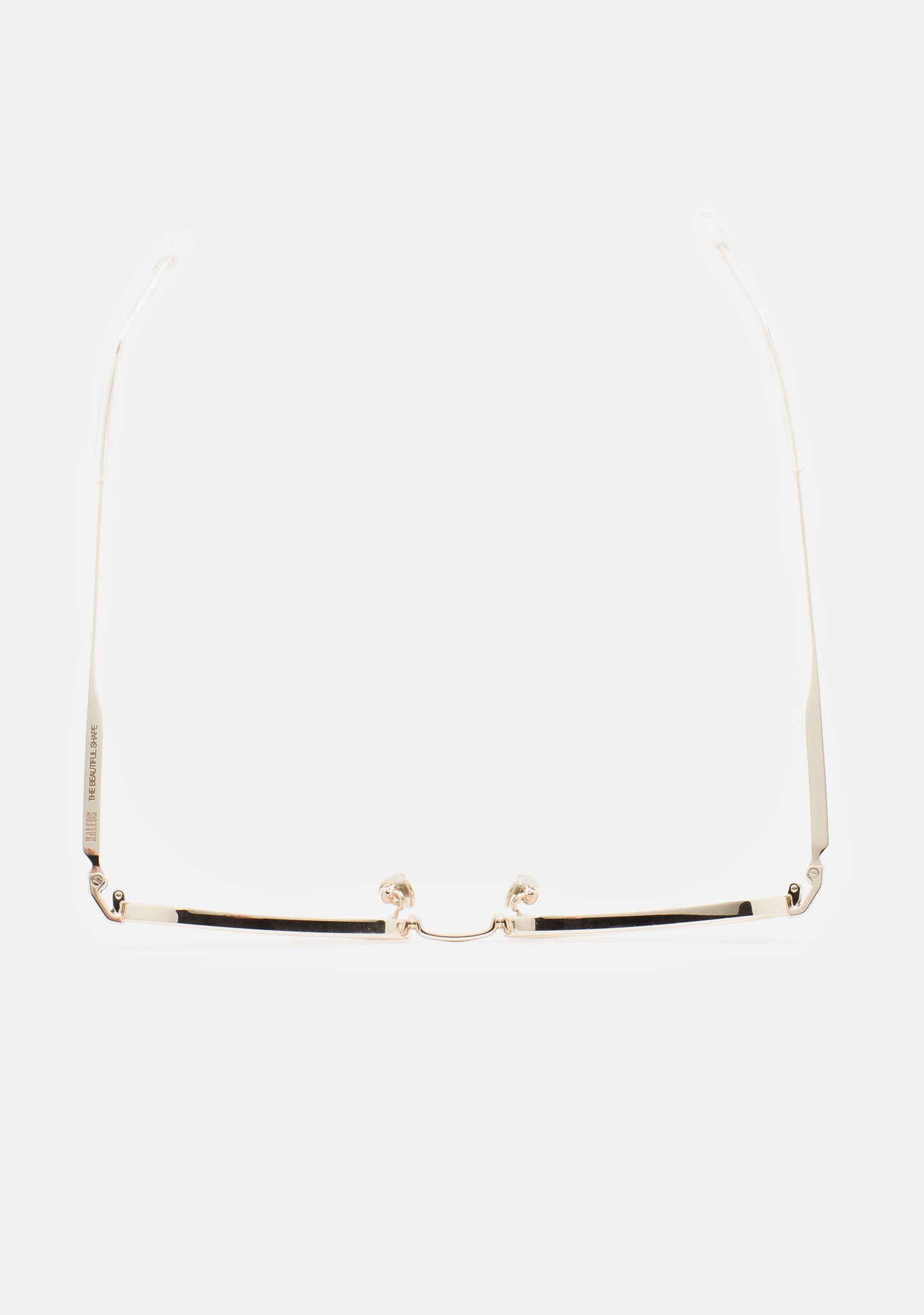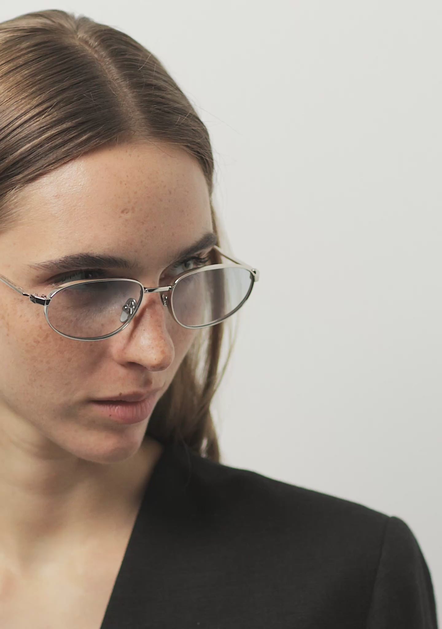 Lunettes de soleil cat-eye. Légères, modernes et frappantes. Face avant et branches en acier inoxydable argent. Branches avec embouts en acétate cristal transparent. Verre photochromique bleu base 2 avec protection UV et traitement antireflet. Catégorie de verre 1-3. Plaquettes de nez intégrées. Fabriquées à la main.