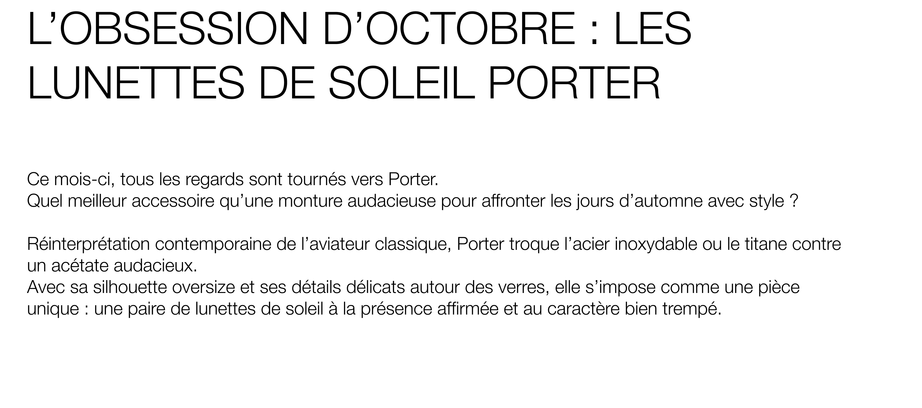 L’OBSESSION D’OCTOBRE : LES LUNETTES DE SOLEIL PORTER