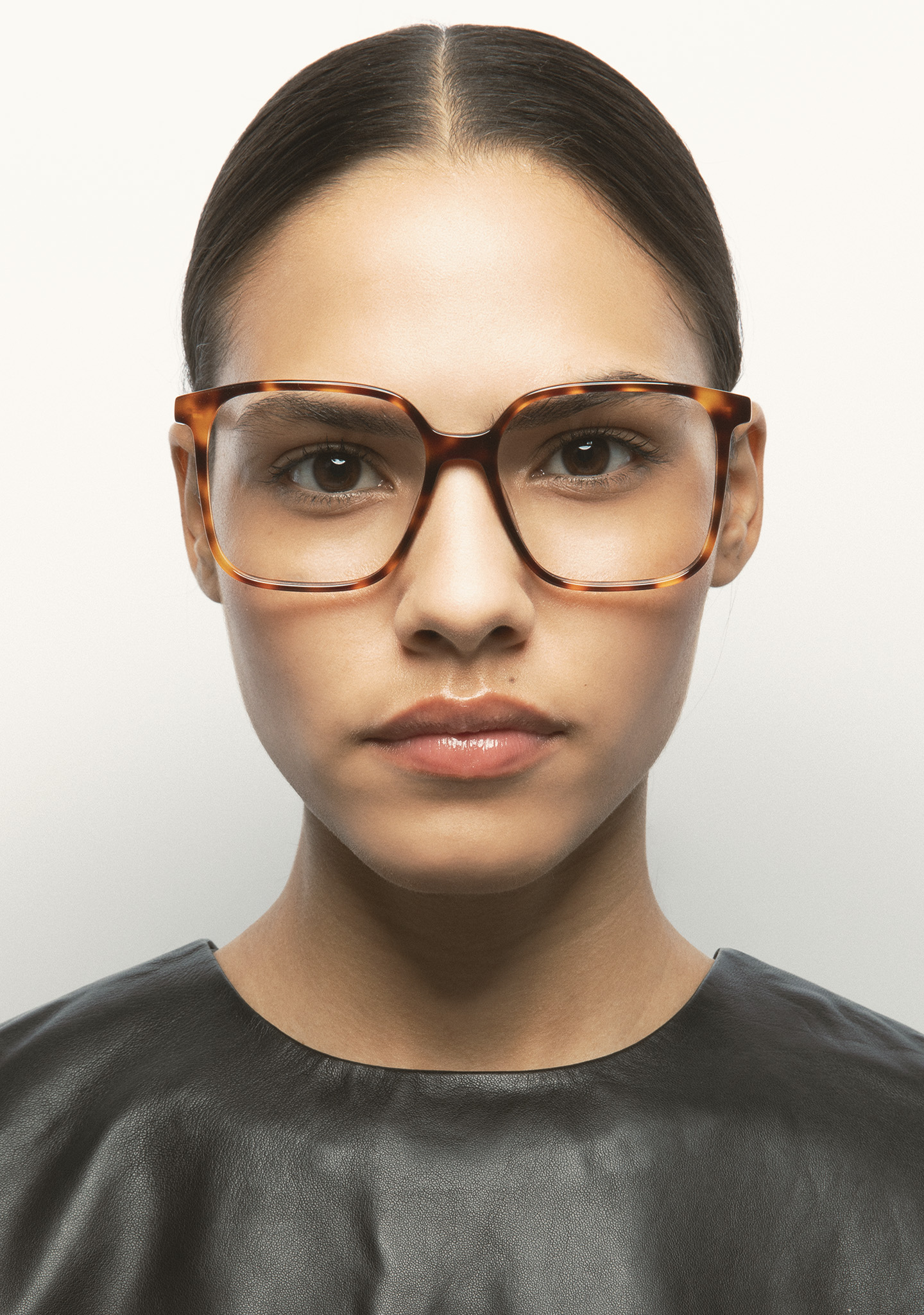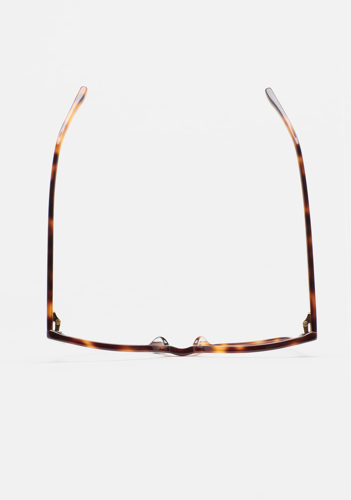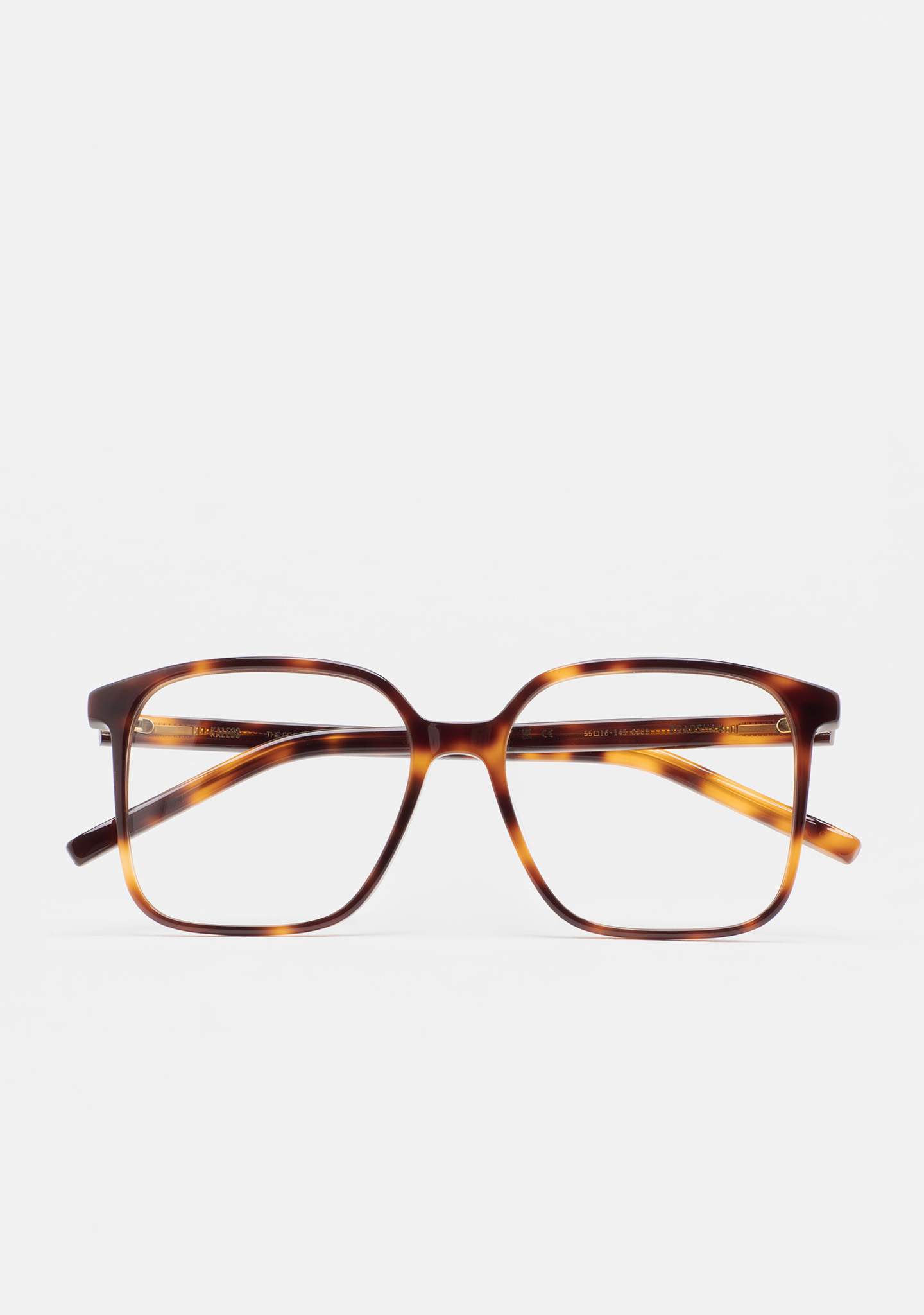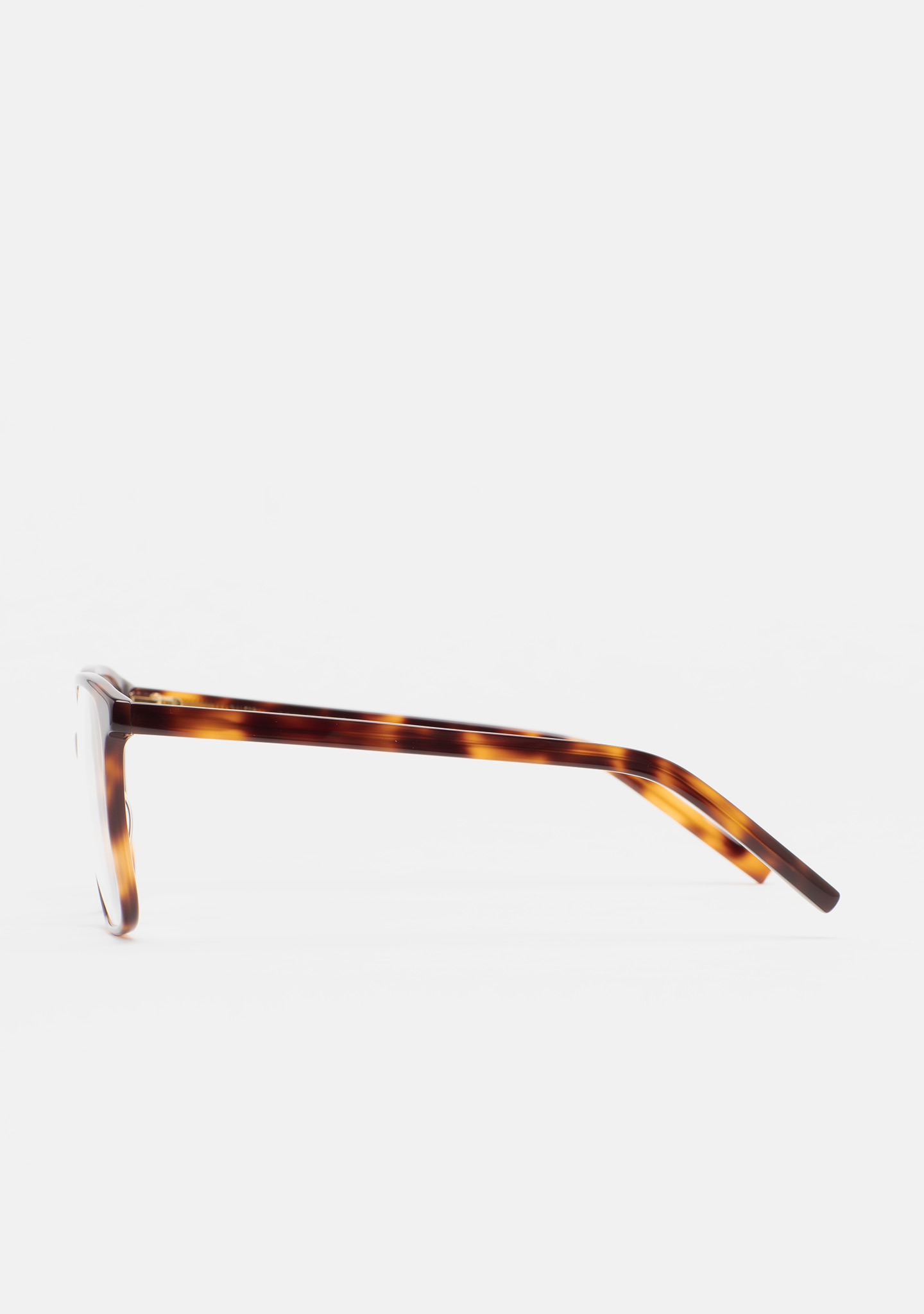 Lunettes de vue de forme carrée. Monture et branches en acétate haute densité havane marron. Plaquettes en acétate intégrées. Fait main.
