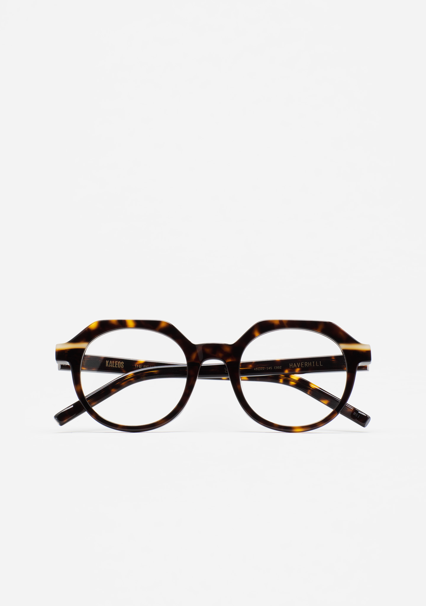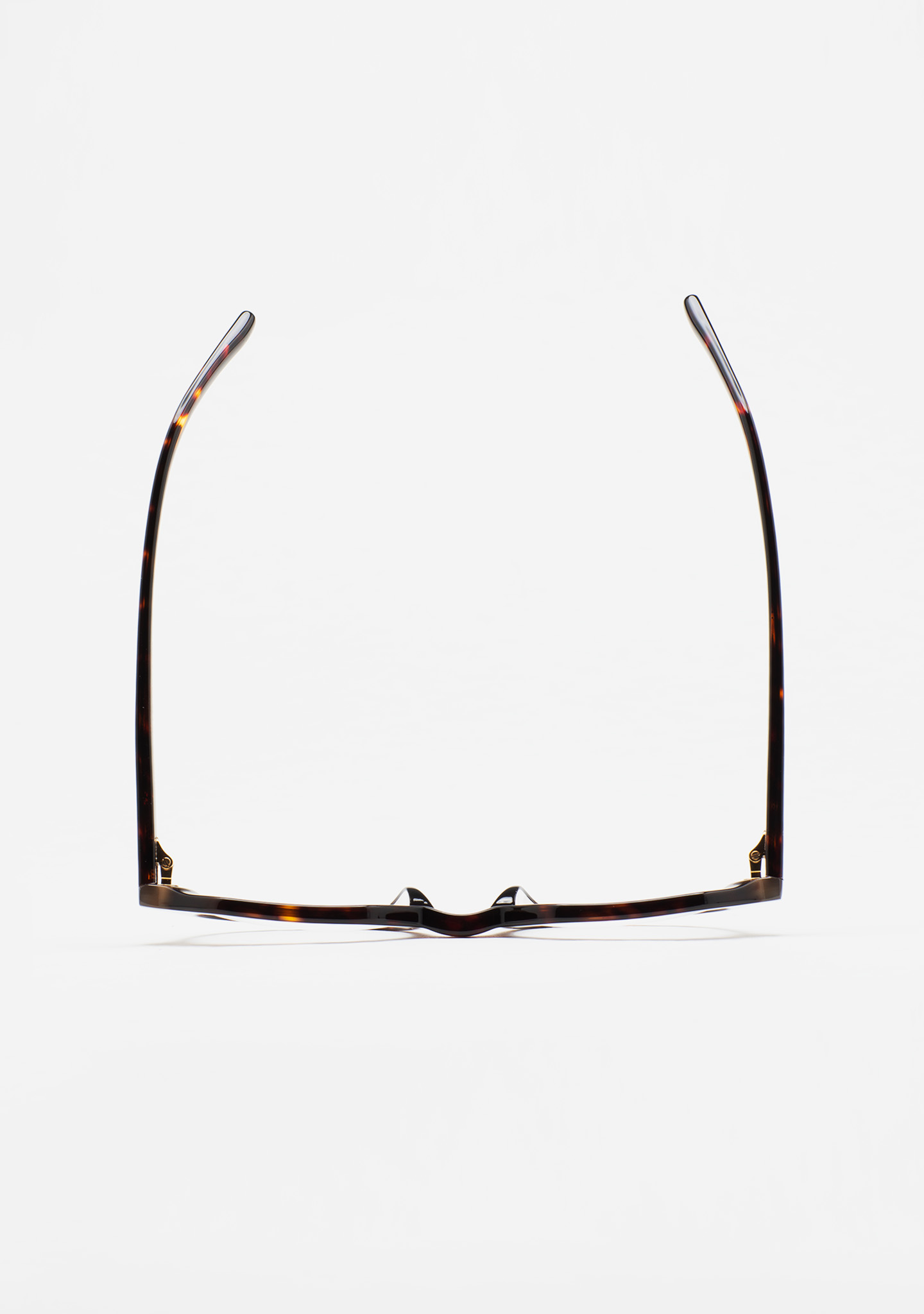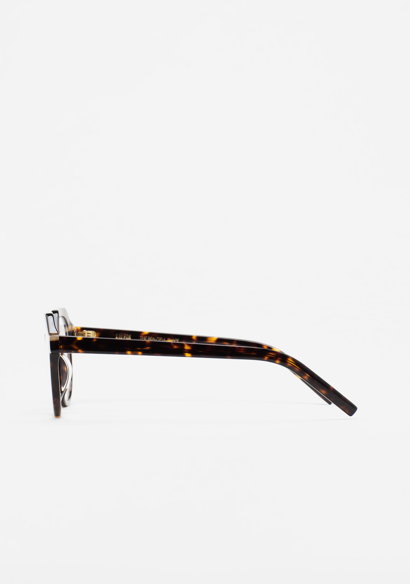 Lunettes de vue pantos. Monture en acétate havane marron avec laminage beige translucide. Branches en acétate havane marron. Plaquettes en acétate fixes. Fait main.