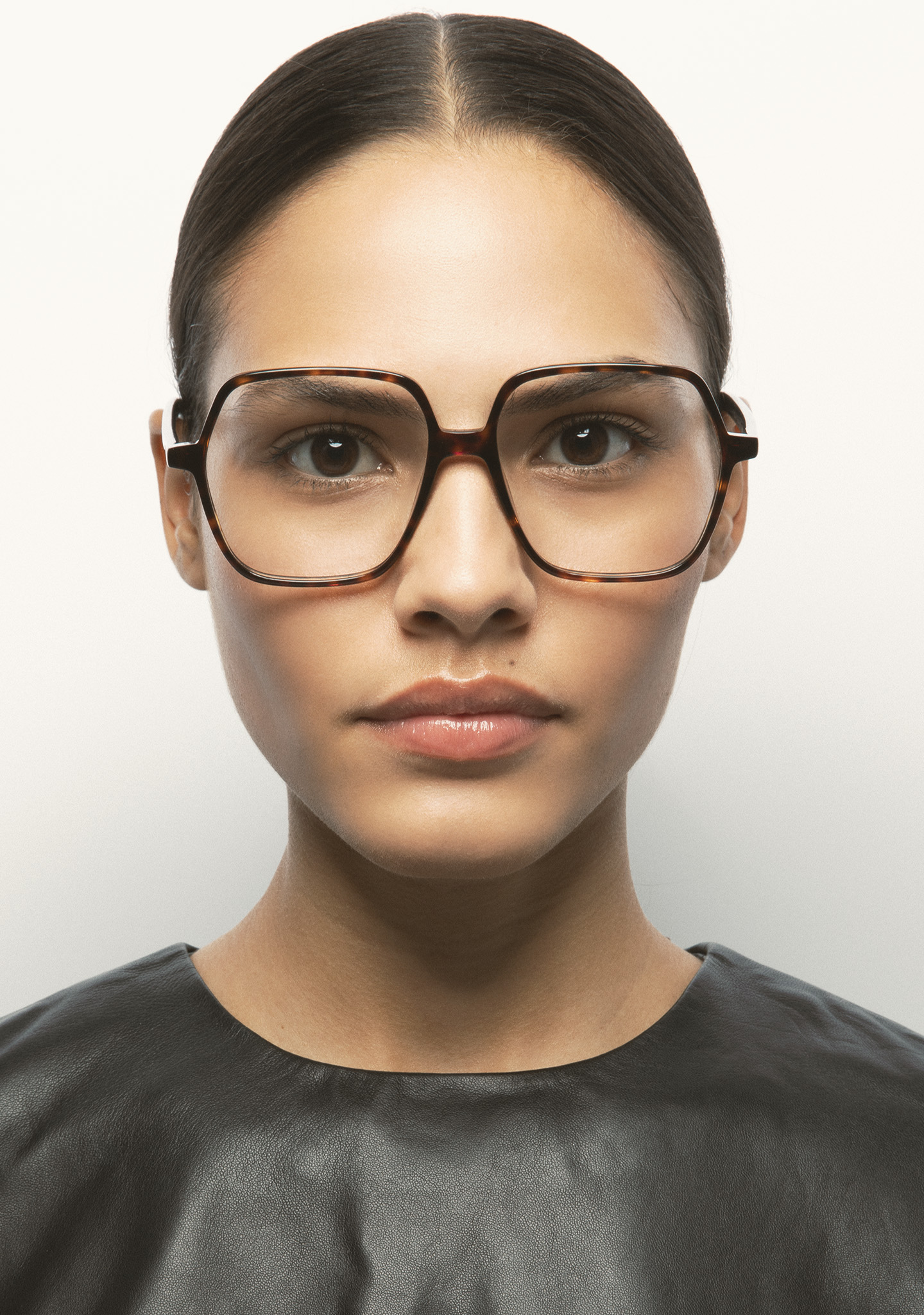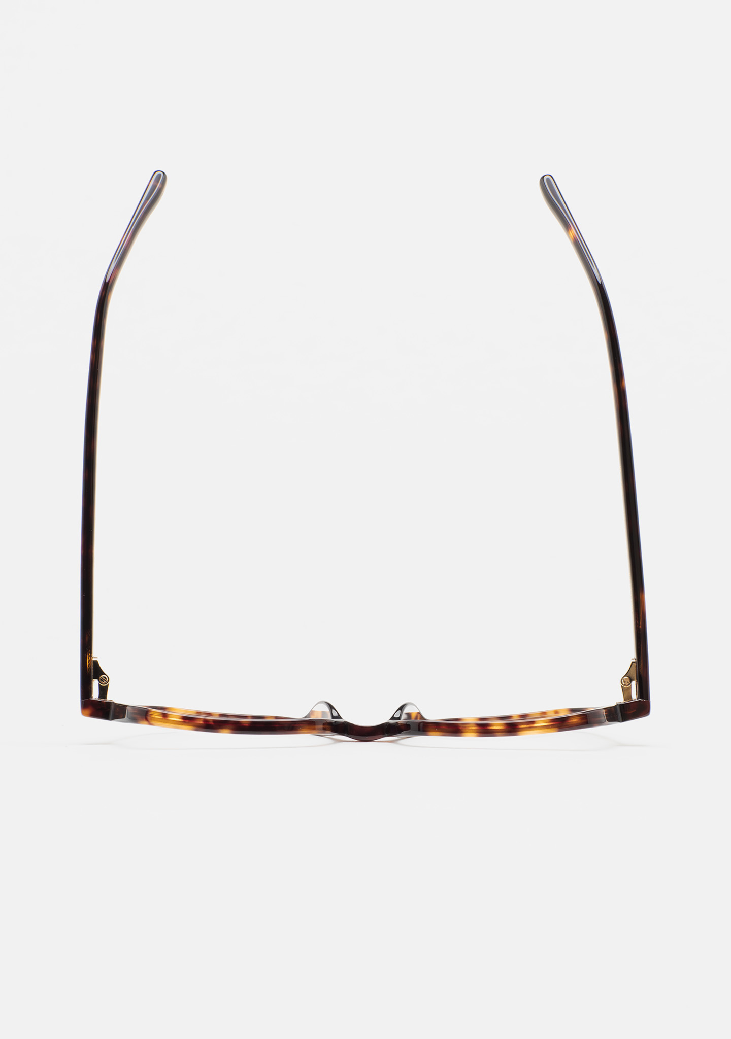 Lunettes de vue de forme carrée. Monture et branches en acétate haute densité havane marron foncé. Plaquettes en acétate intégrées. Fait main.