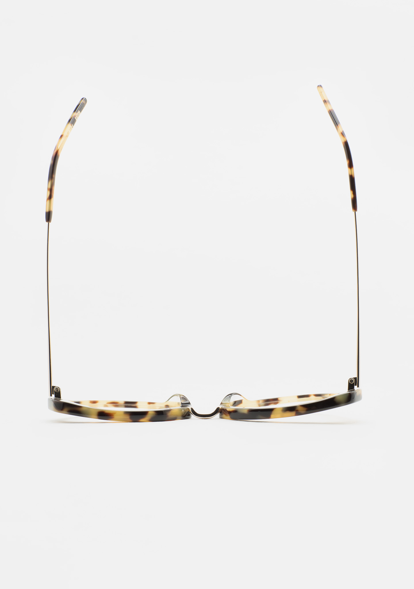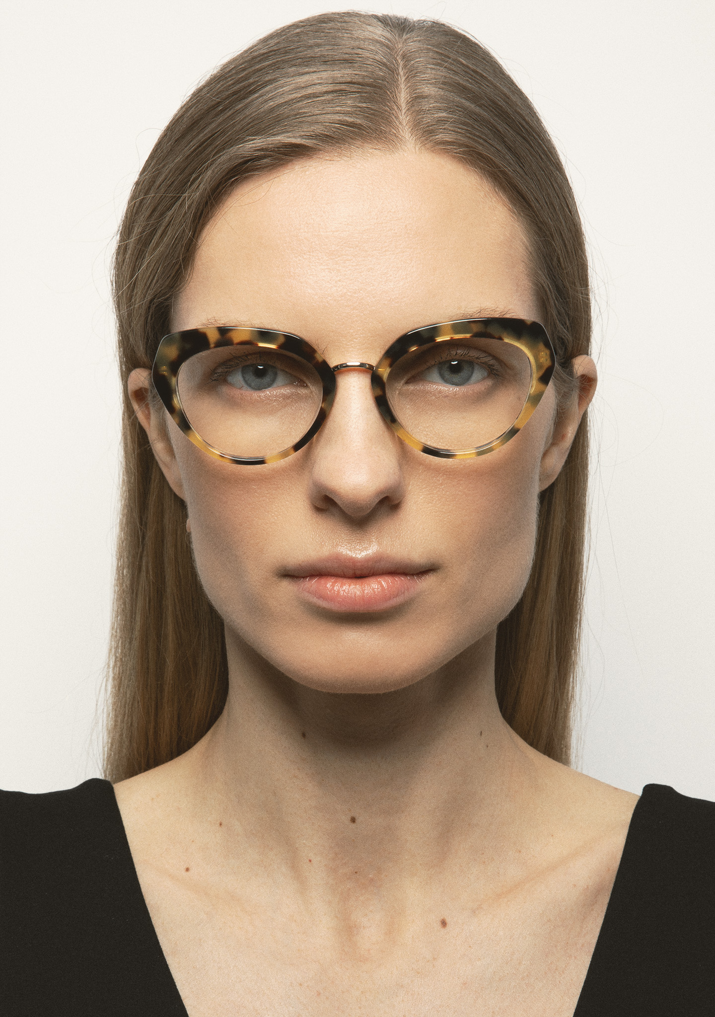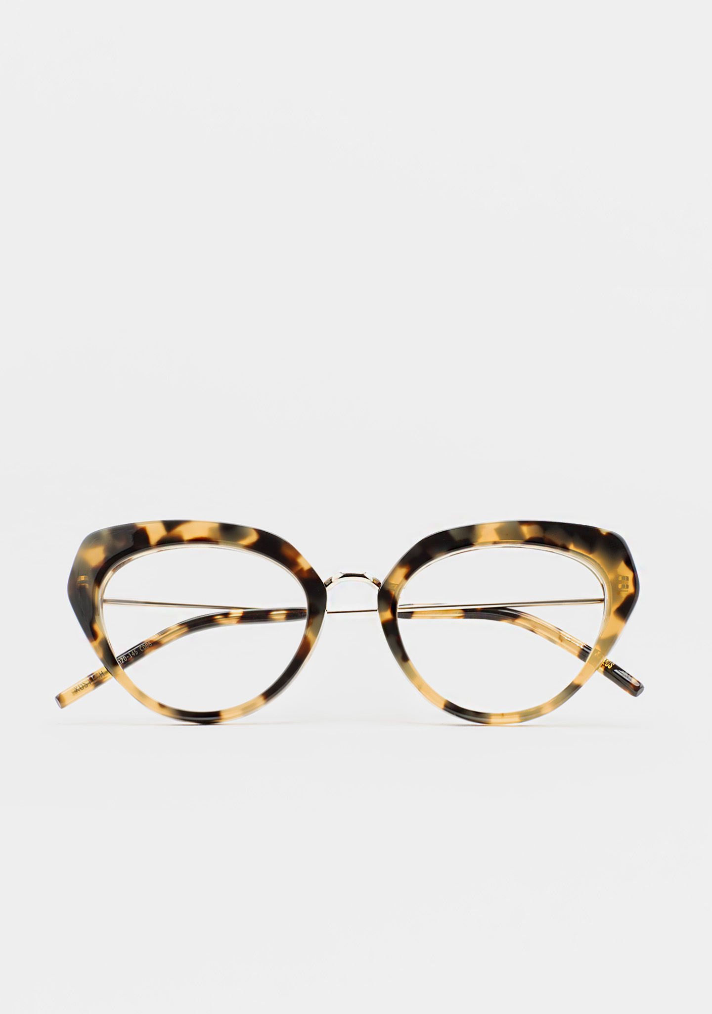 Lunettes de vue de forme cat-eye. Une forme audacieuse qui fait la différence. Face en acétate havane marron. Structure et pont en acier inoxydable doré. Branches en acier inoxydable avec manchons en acétate havane marron. Plaquettes en acétate intégrées. Fabriquées à la main.