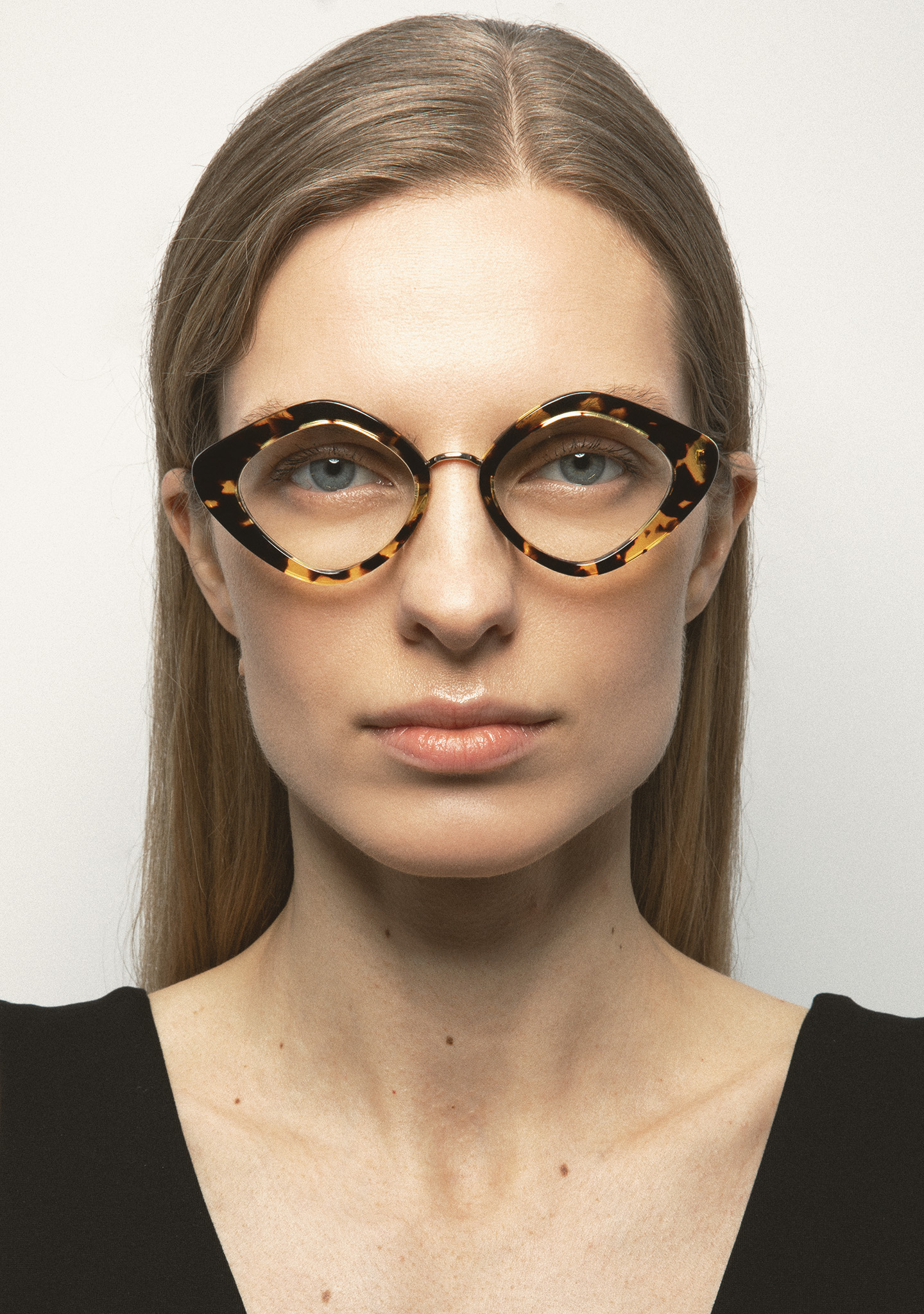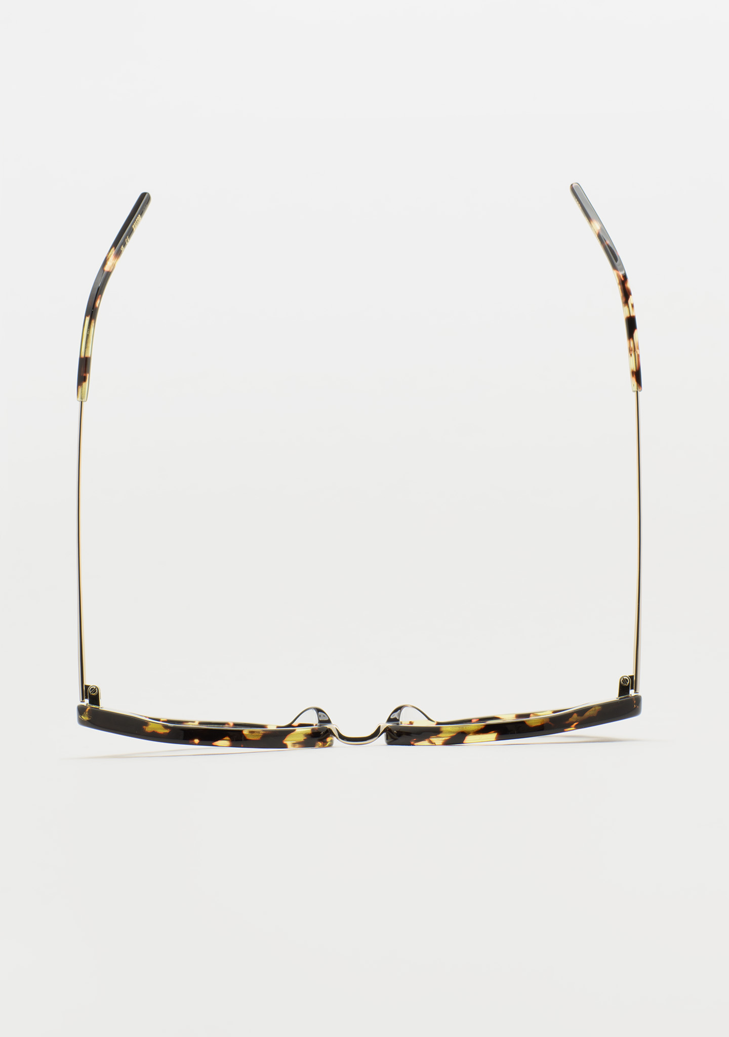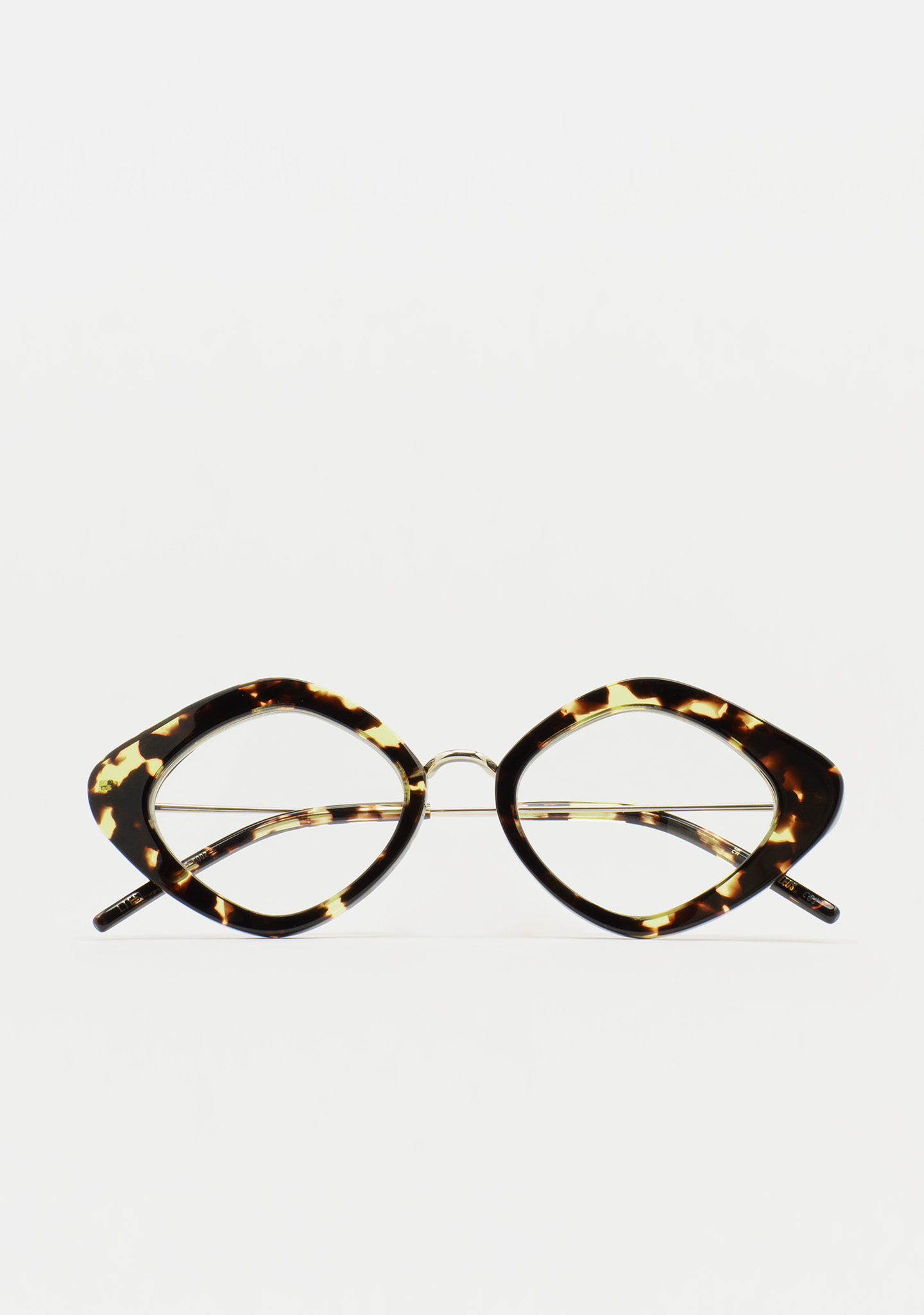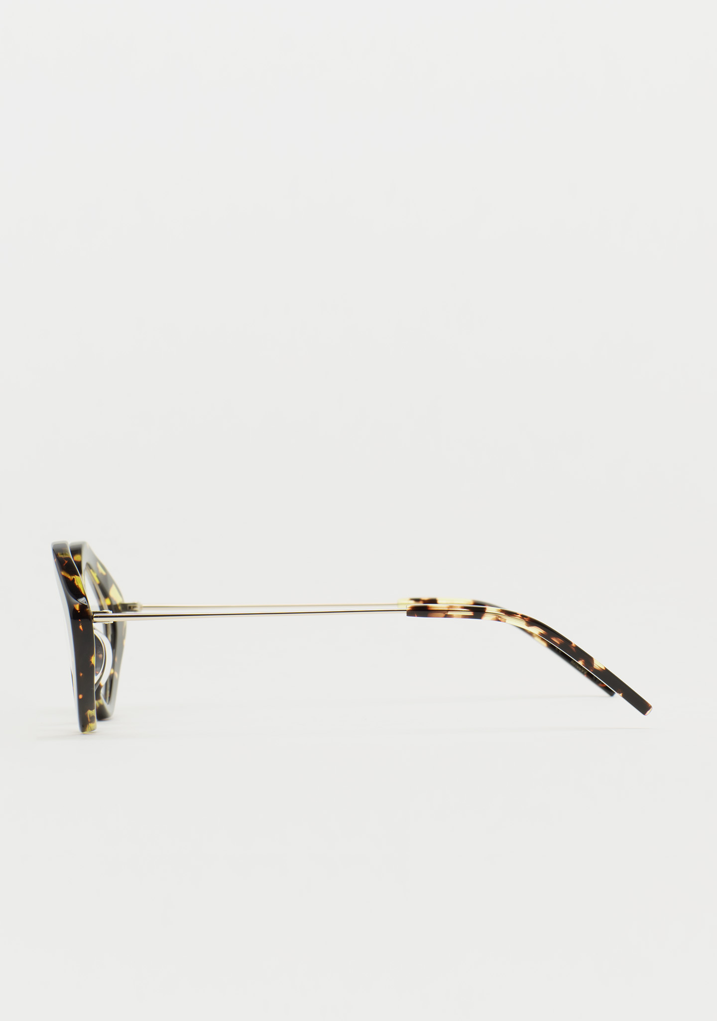 Lunettes de vue de forme Sil-de-chat. Un design qui respire la modernité. Face en acétate havane marron vintage. Structure et pont en acier inoxydable doré. Branches en acier inoxydable avec embouts en acétate havane marron vintage. Plaquettes en acétate intégrées. Fabriquées à la main.