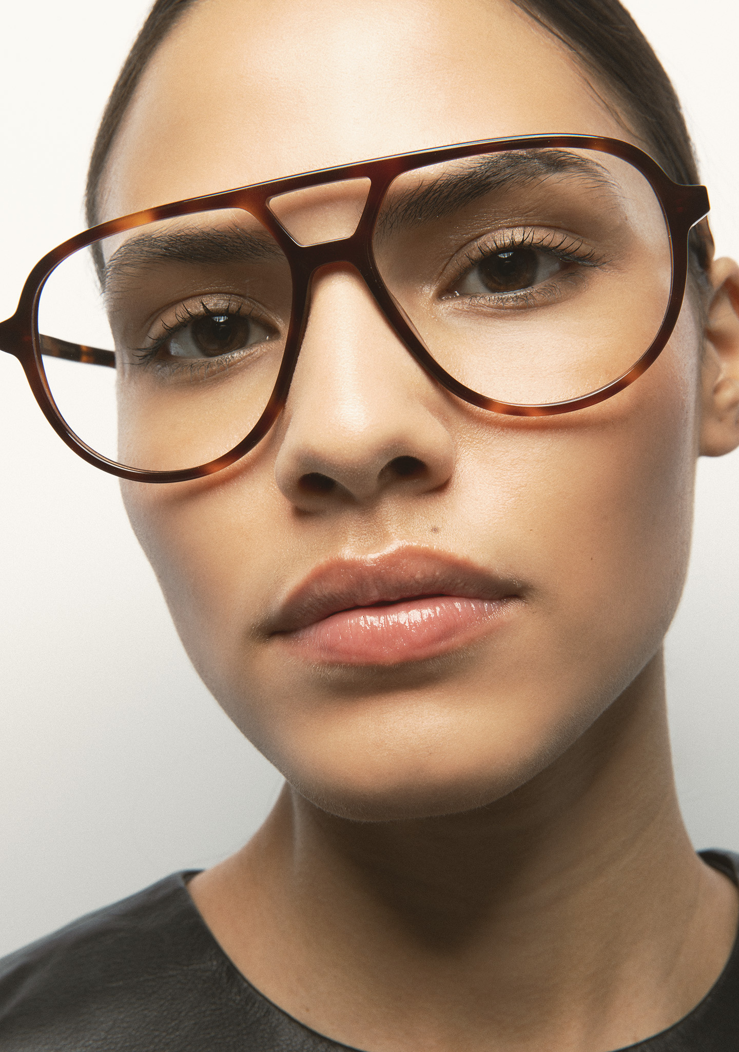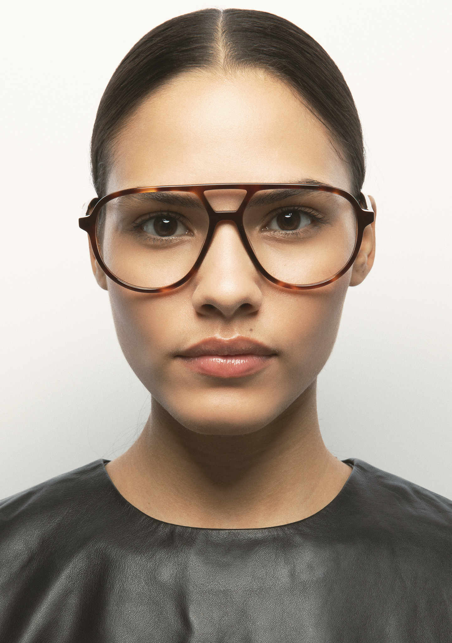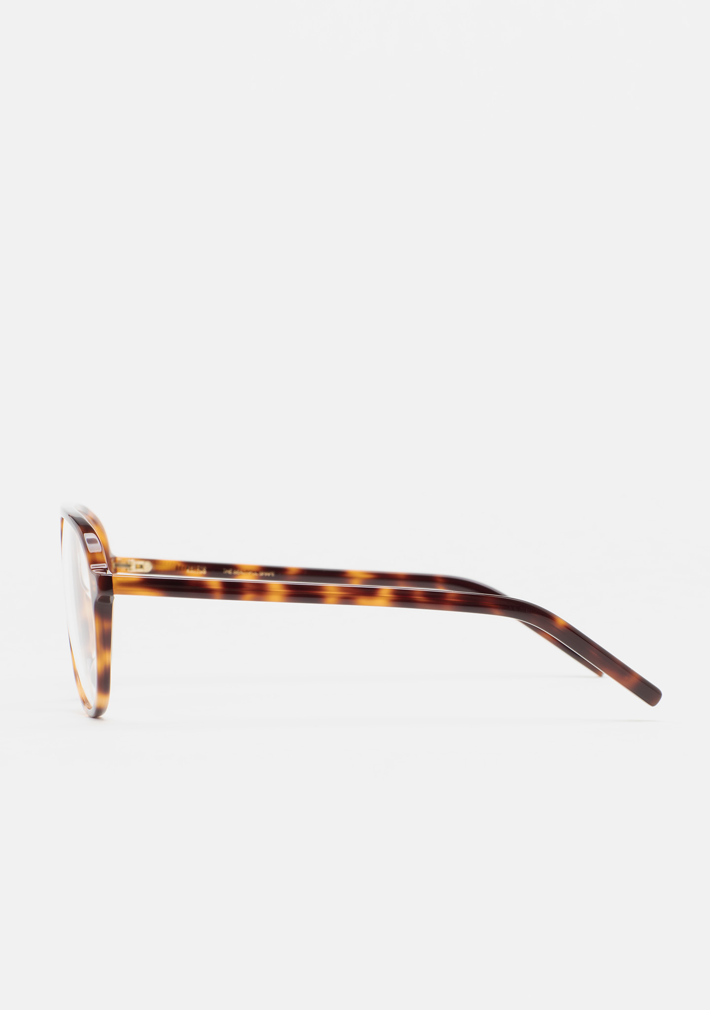Lunettes de vue de forme aviateur avec double pont. Monture et branches en acétate haute densité havane marron foncé. Plaquettes en acétate intégrées. Fait main.