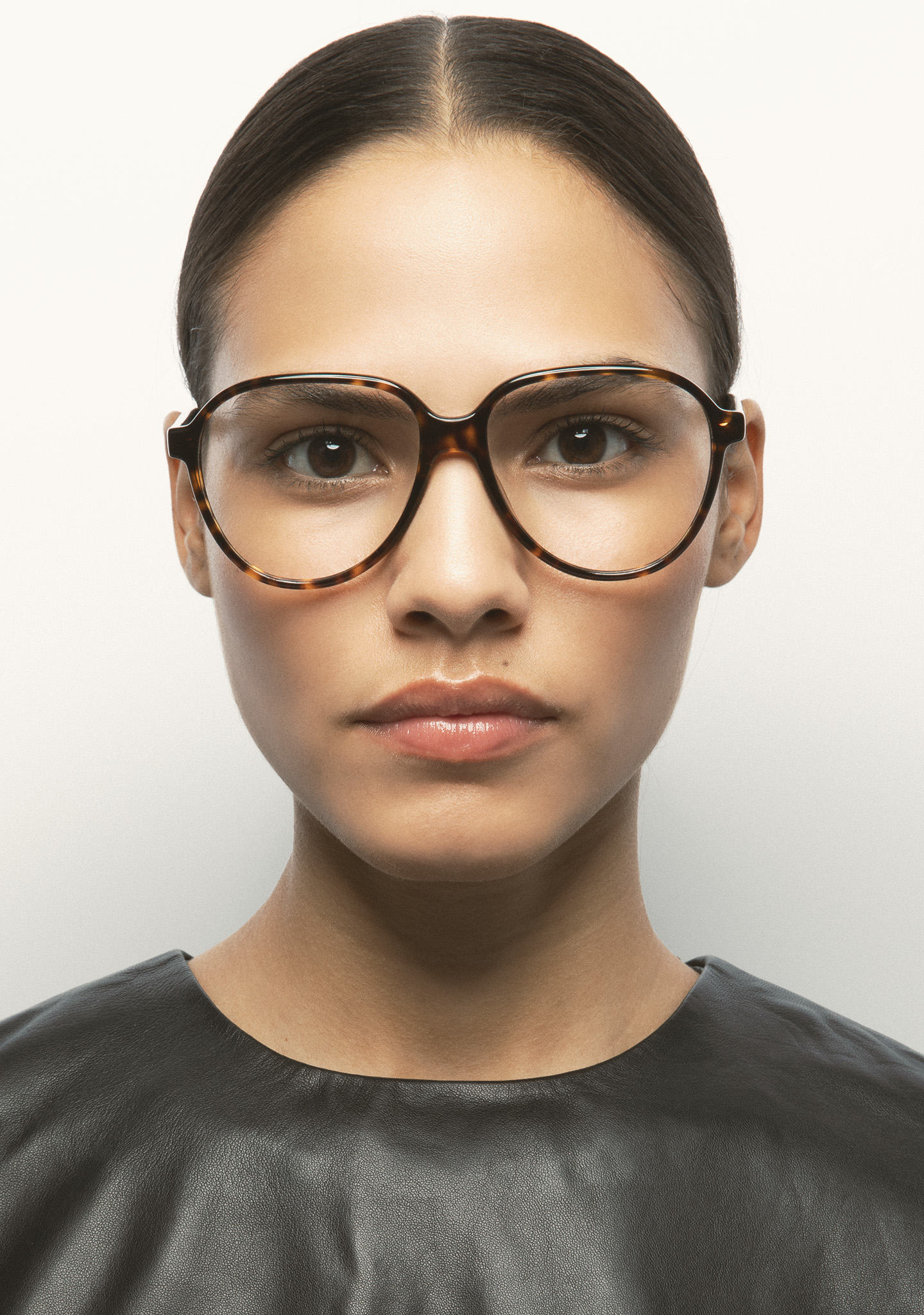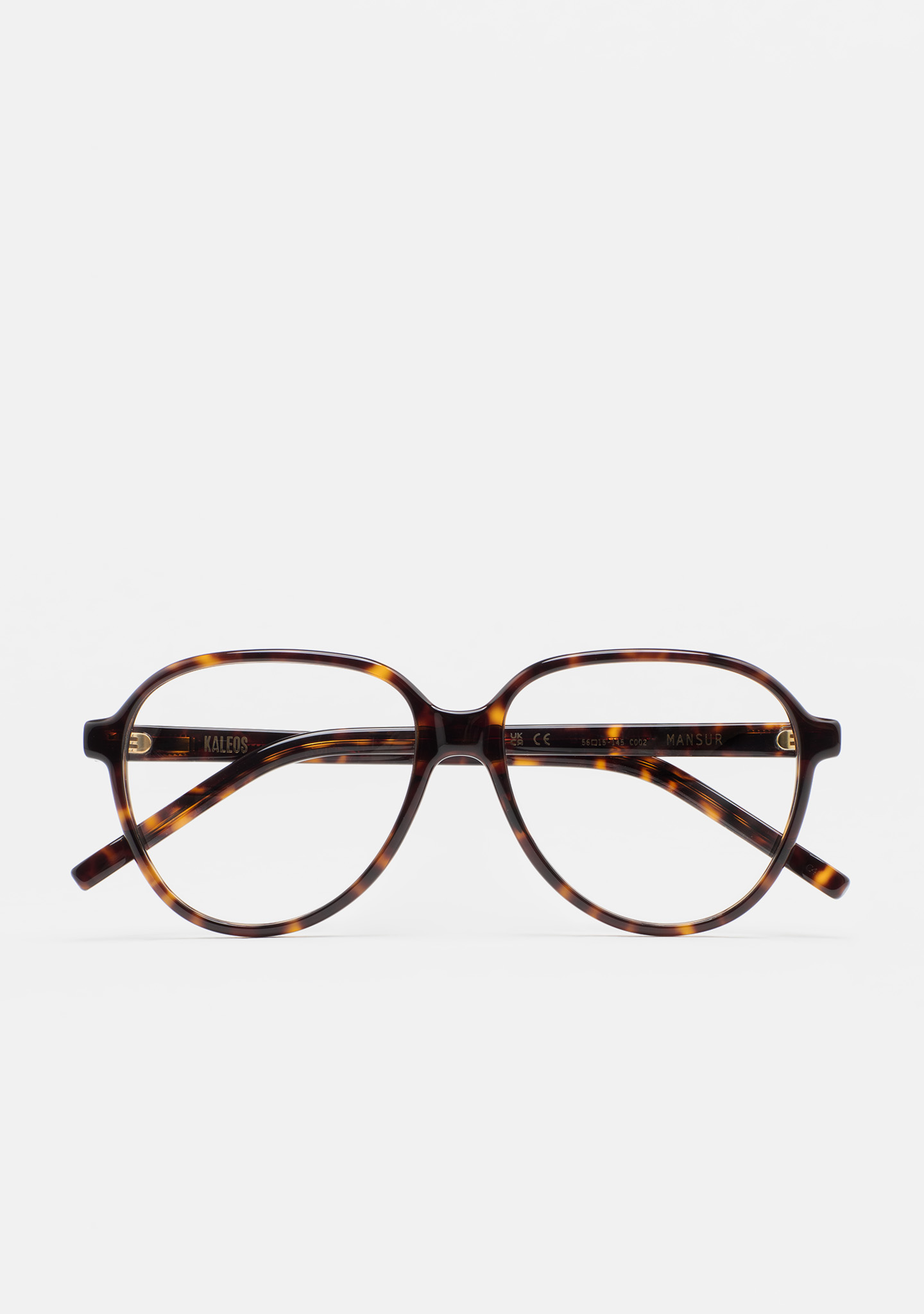Lunettes de vue de forme aviateur. Monture et branches en acétate haute densité havane marron foncé. Plaquettes en acétate intégrées. Fait main.