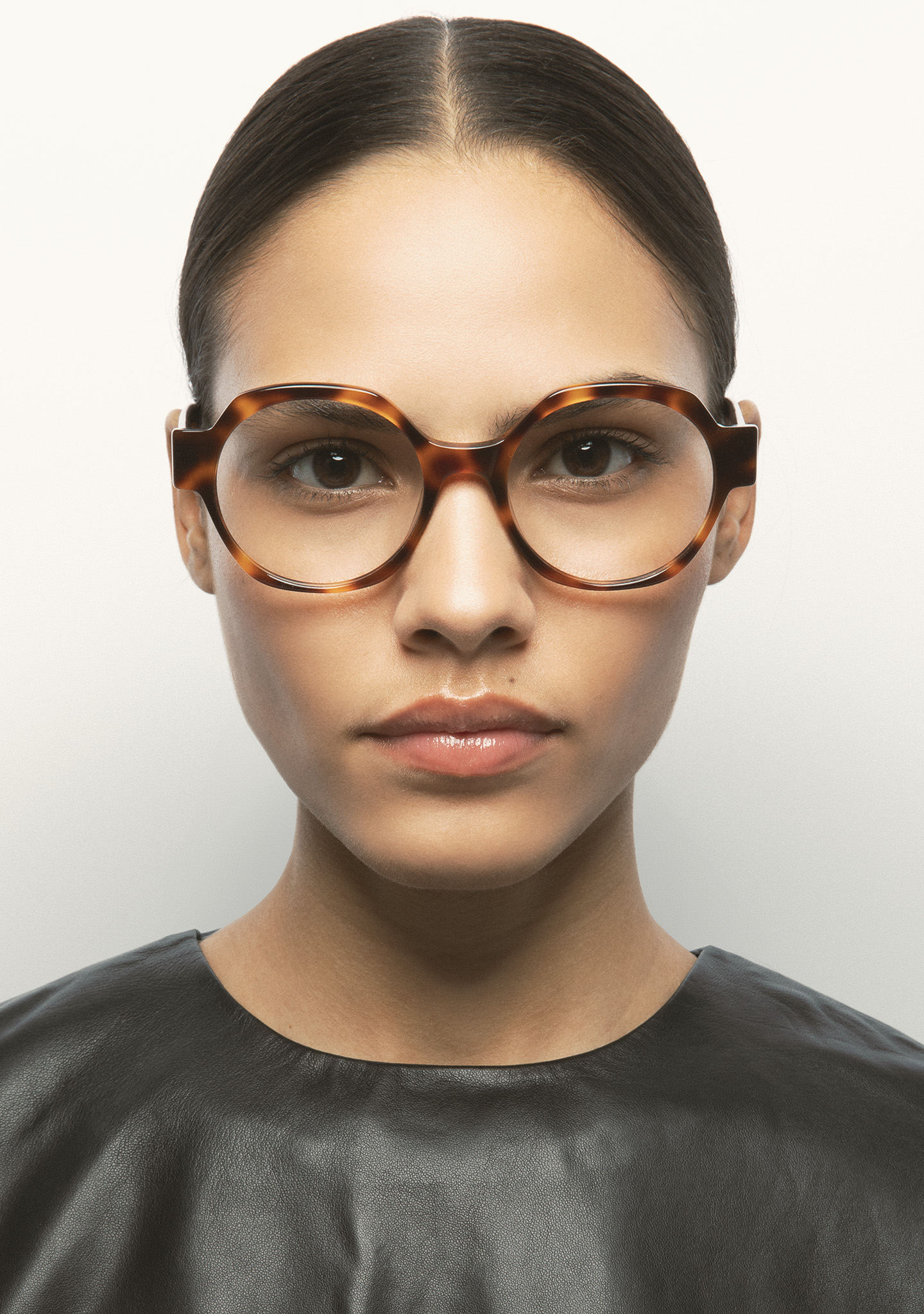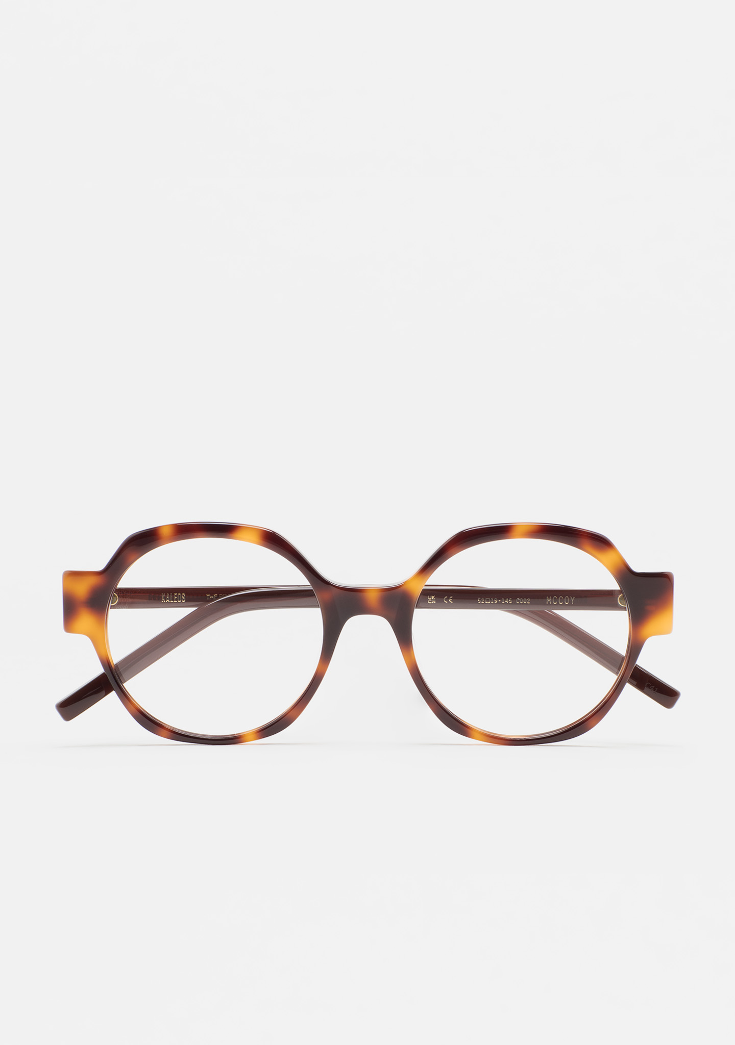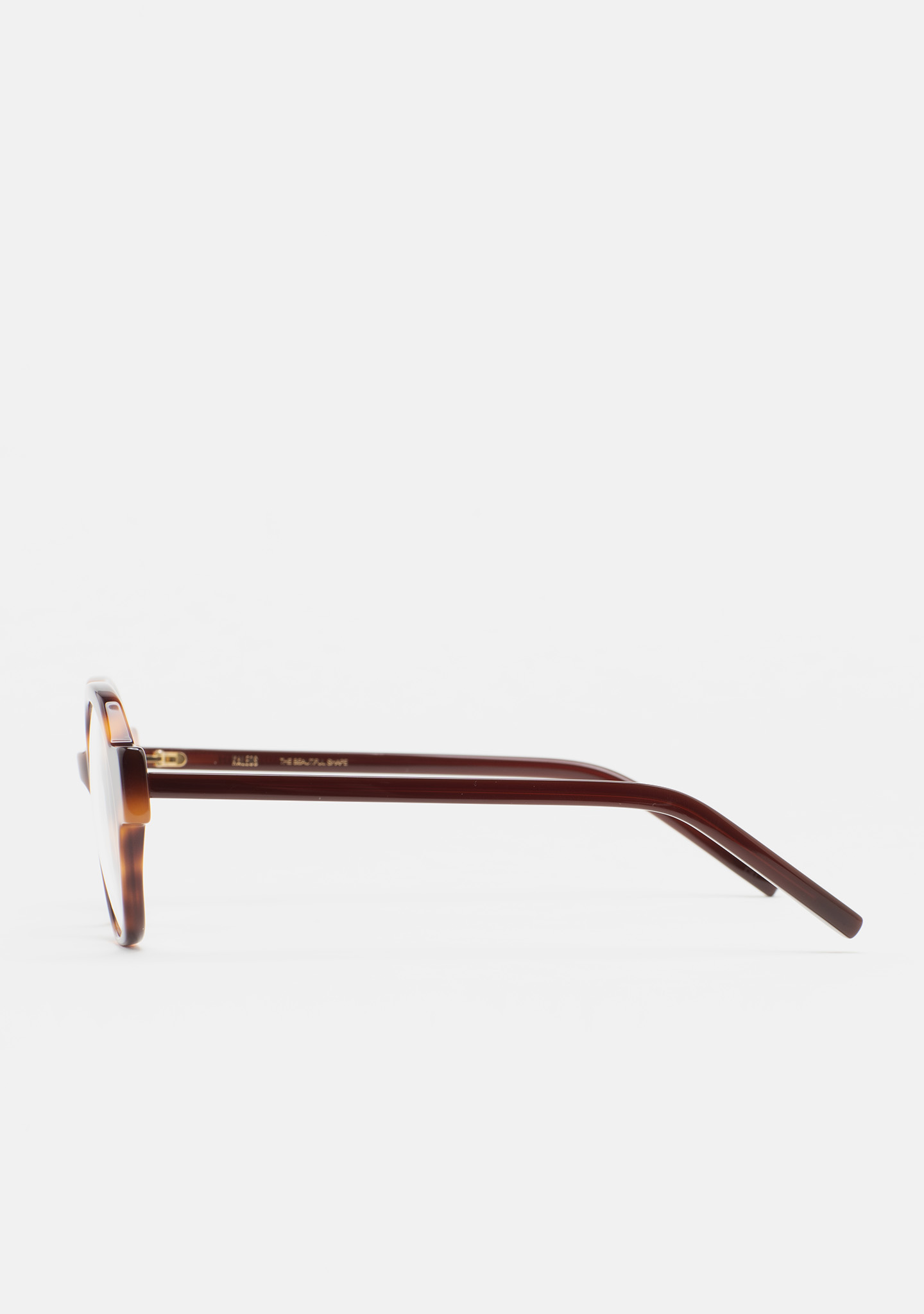 Lunettes de vue de forme arrondie. Monture en acétate havane marron. Branches en acétate marron translucide. Plaquettes en acétate intégrées. Fait main.