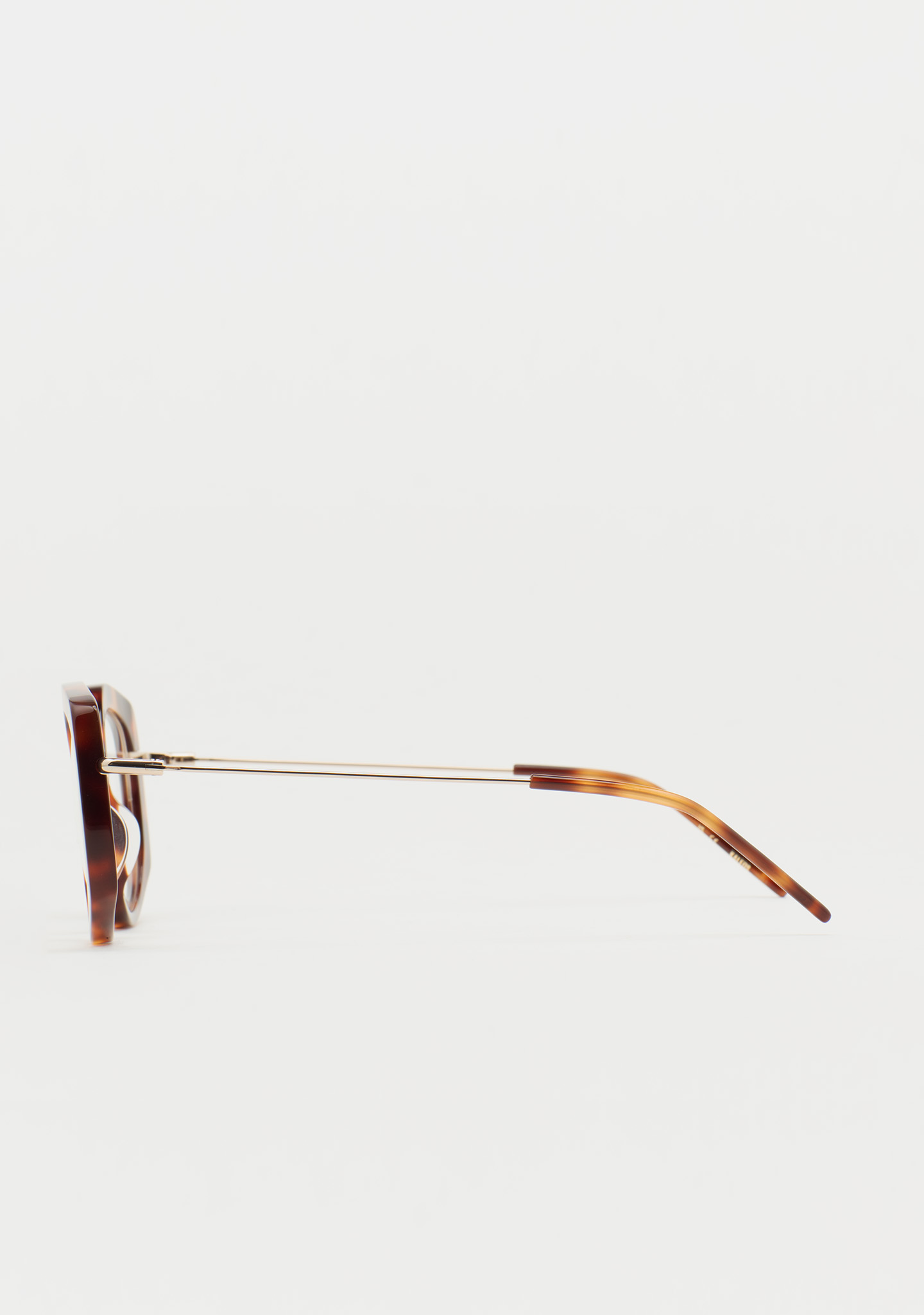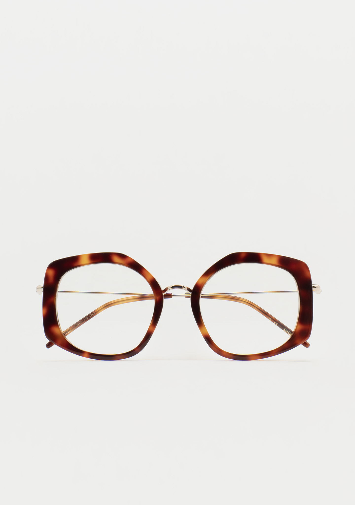 Lunettes de vue de forme pentagonale. Audace et personnalité à chaque angle. Face en acétate havane marron foncé. Structure et pont en acier inoxydable doré. Branches en acier inoxydable avec embouts en acétate havane marron foncé. Plaquettes en acétate intégrées. Fabriquées à la main.