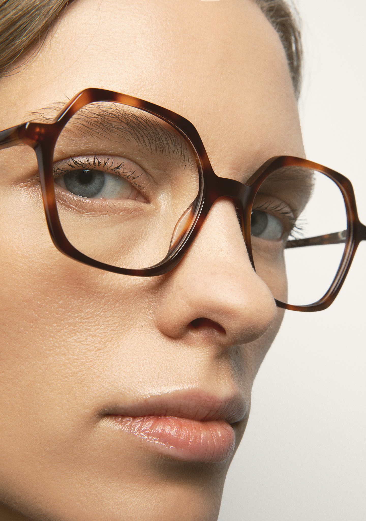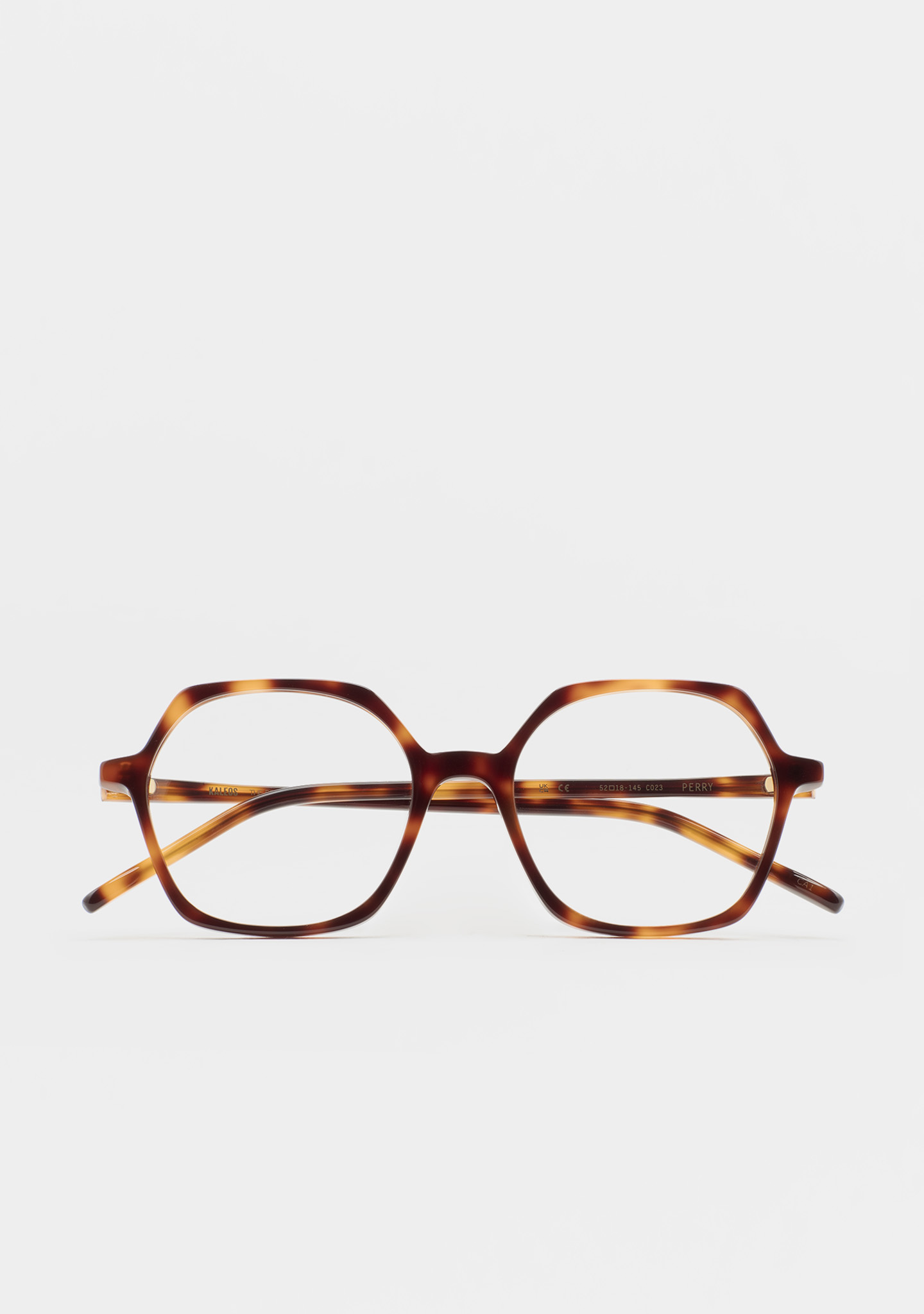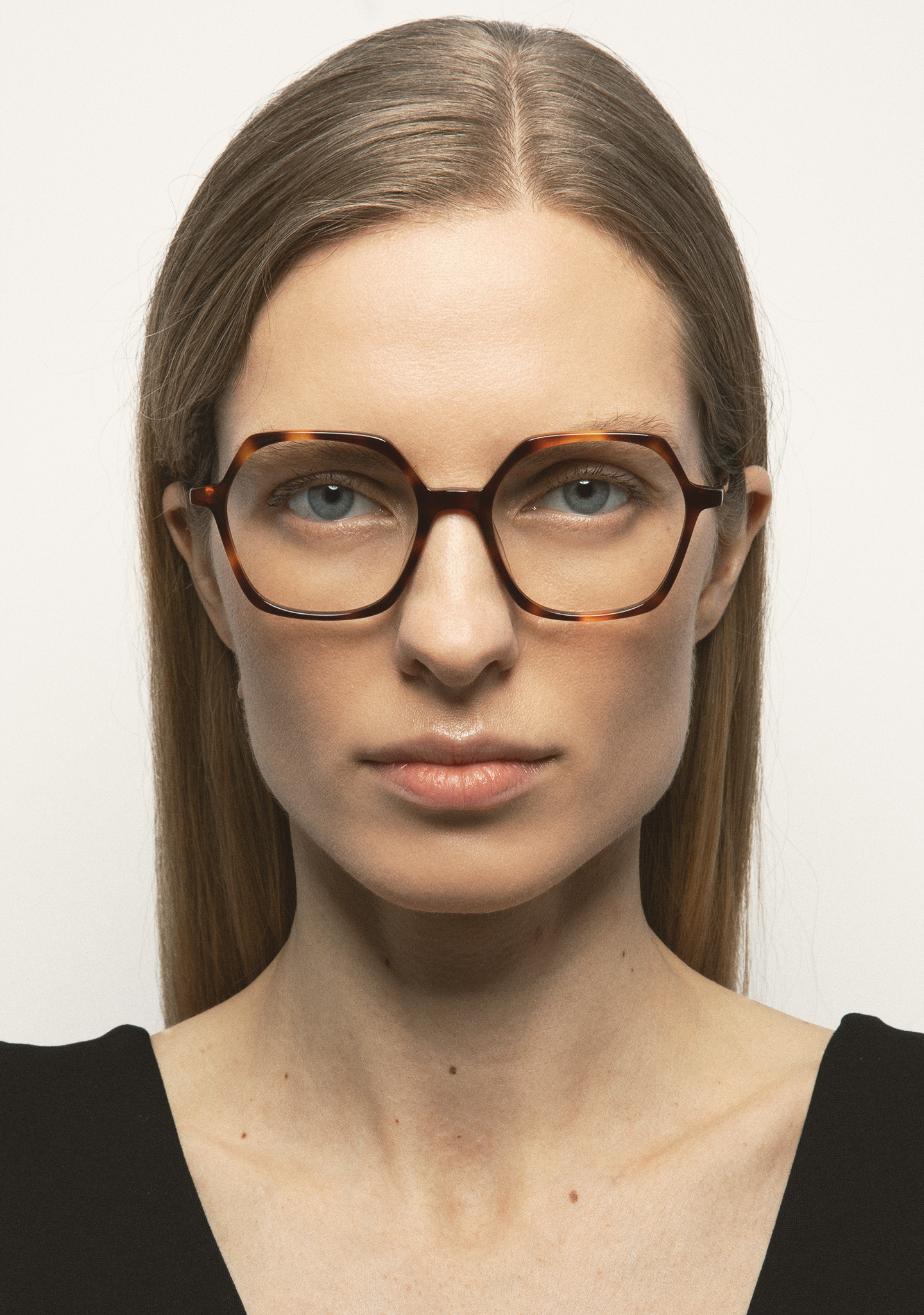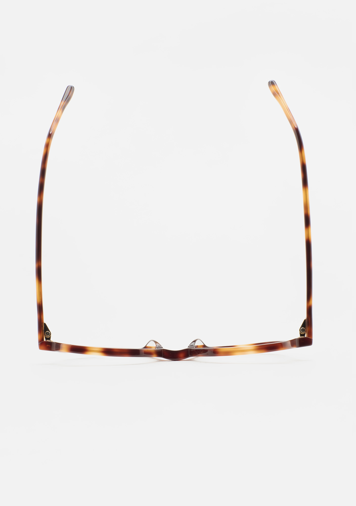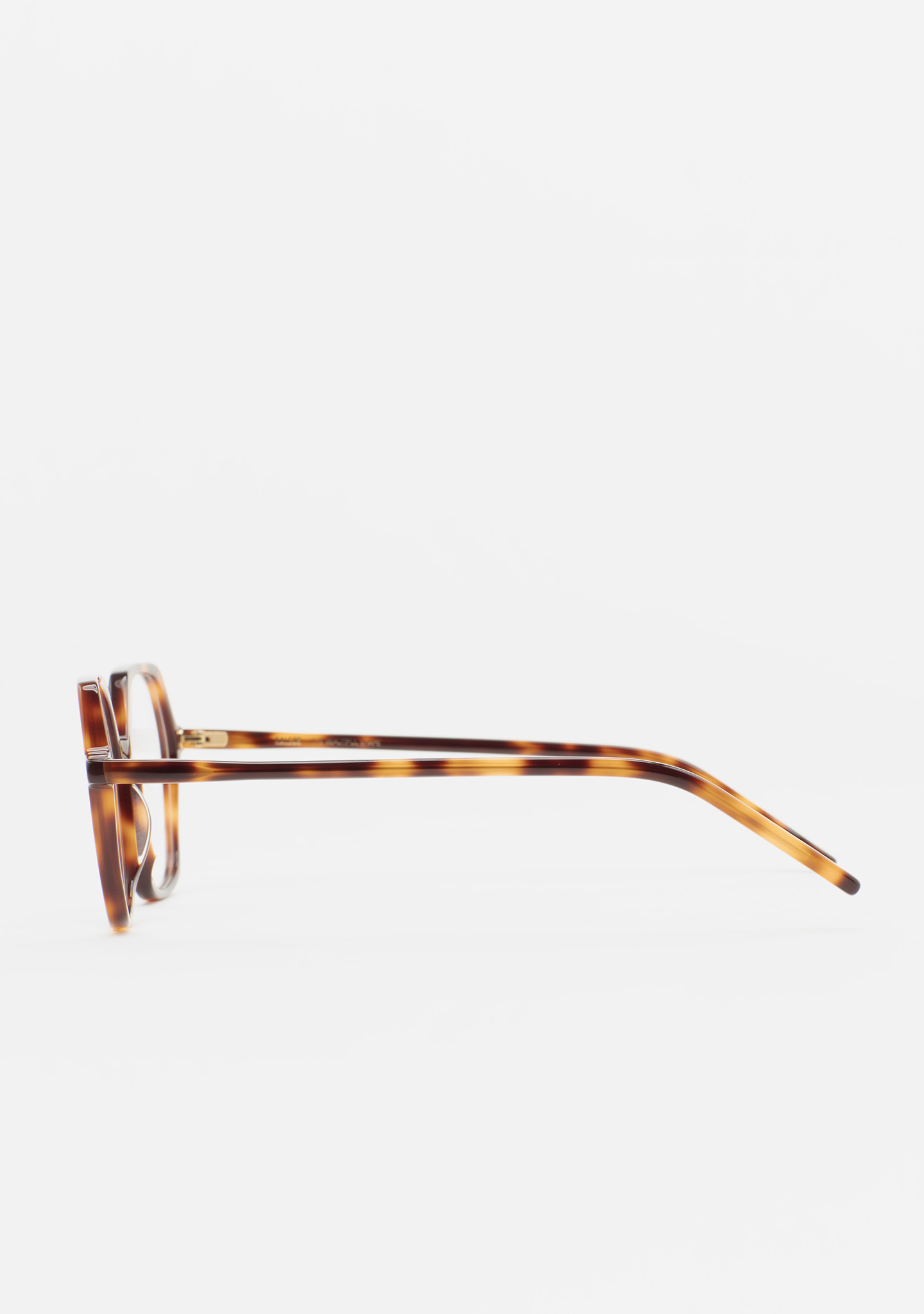 Lunettes de vue de forme hexagonale. Un minimalisme qui ne passe pas inaperçu. Face et branches en acétate havane marron. Plaquettes en acétate intégrées. Fabriquées à la main.
