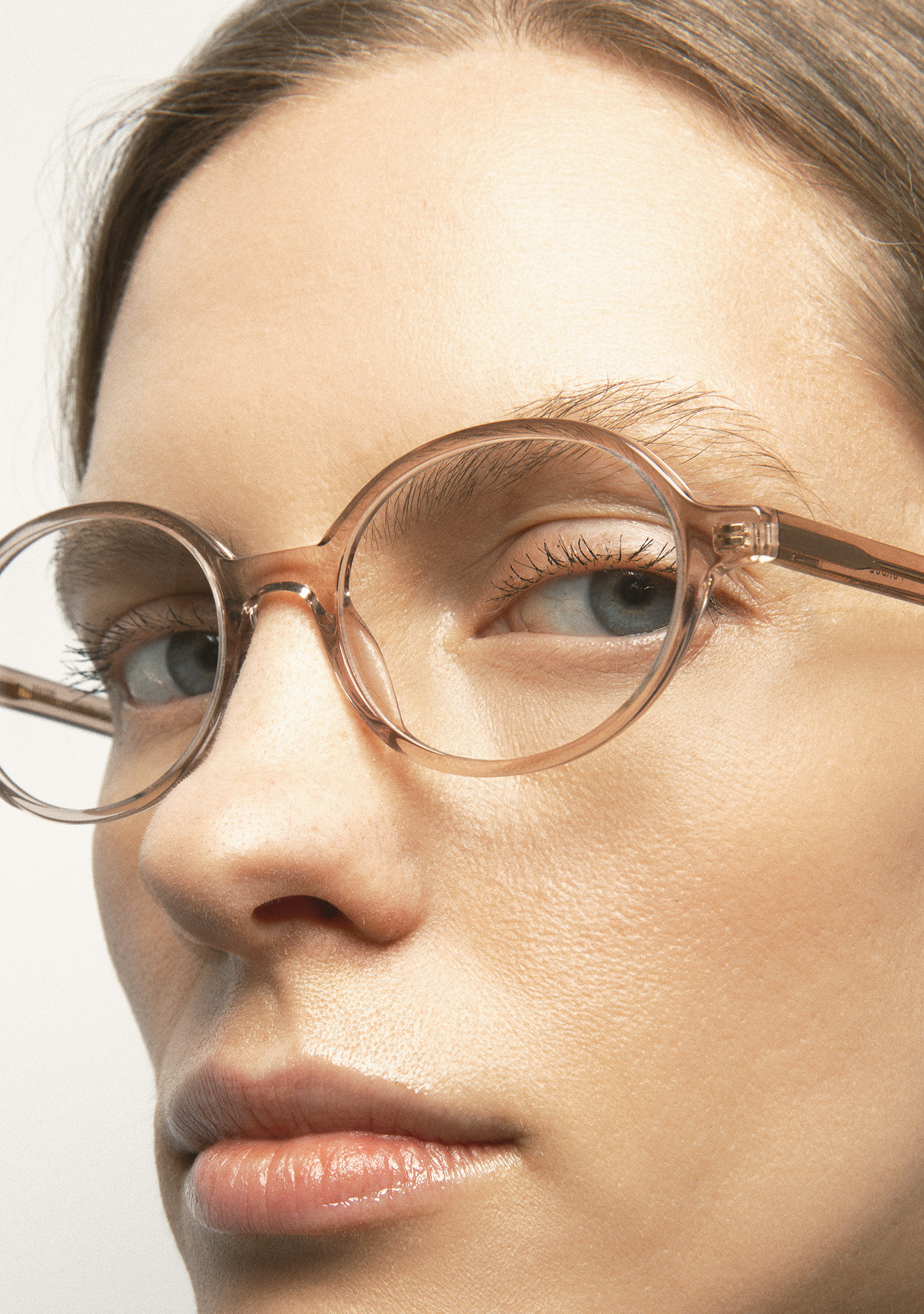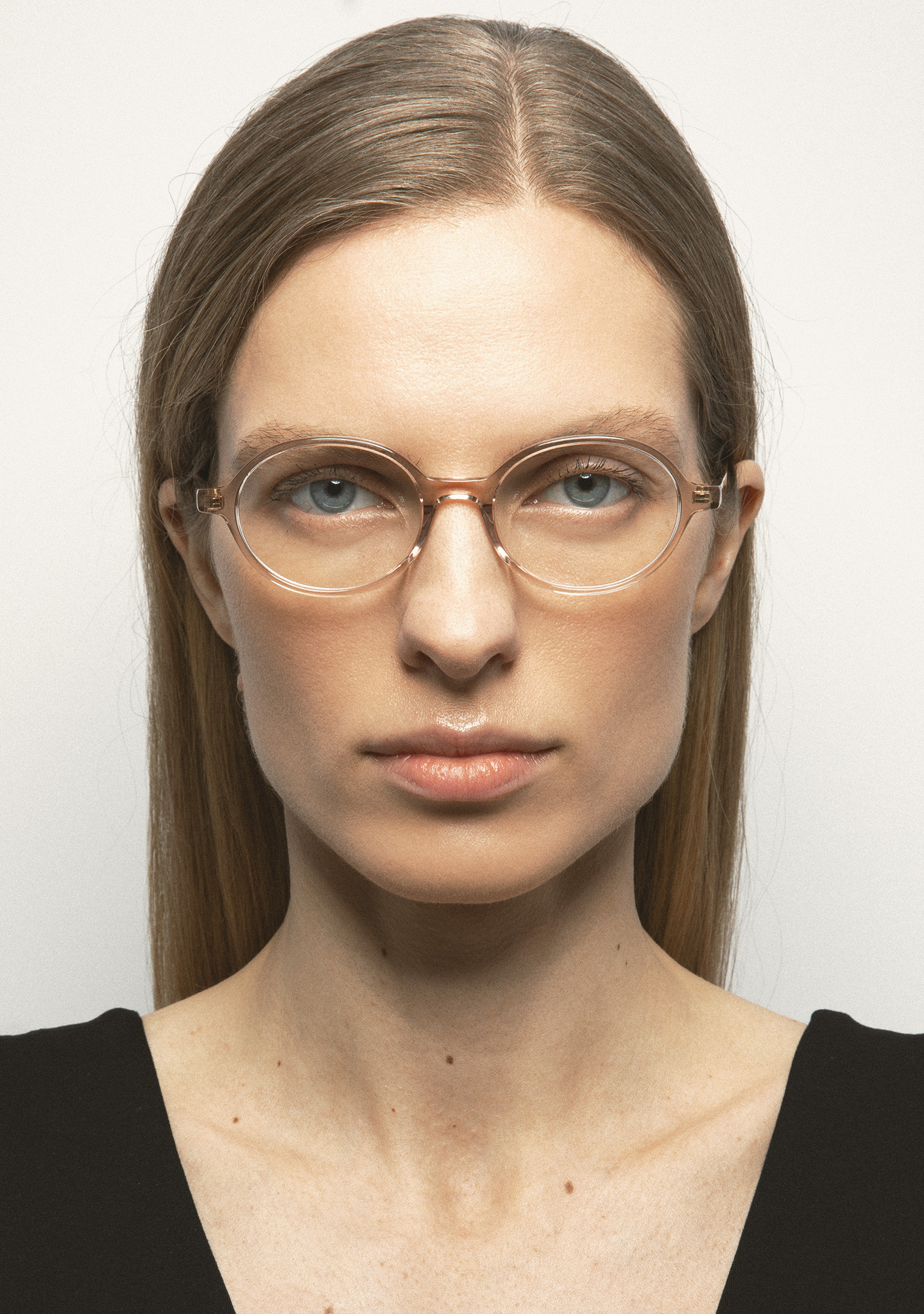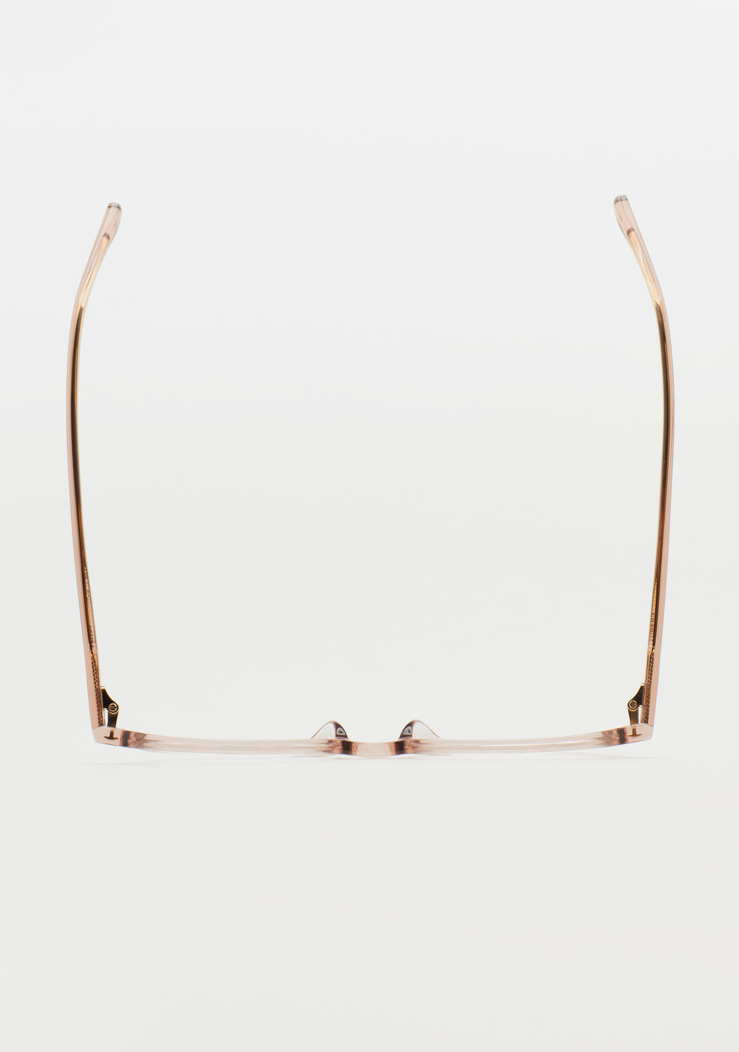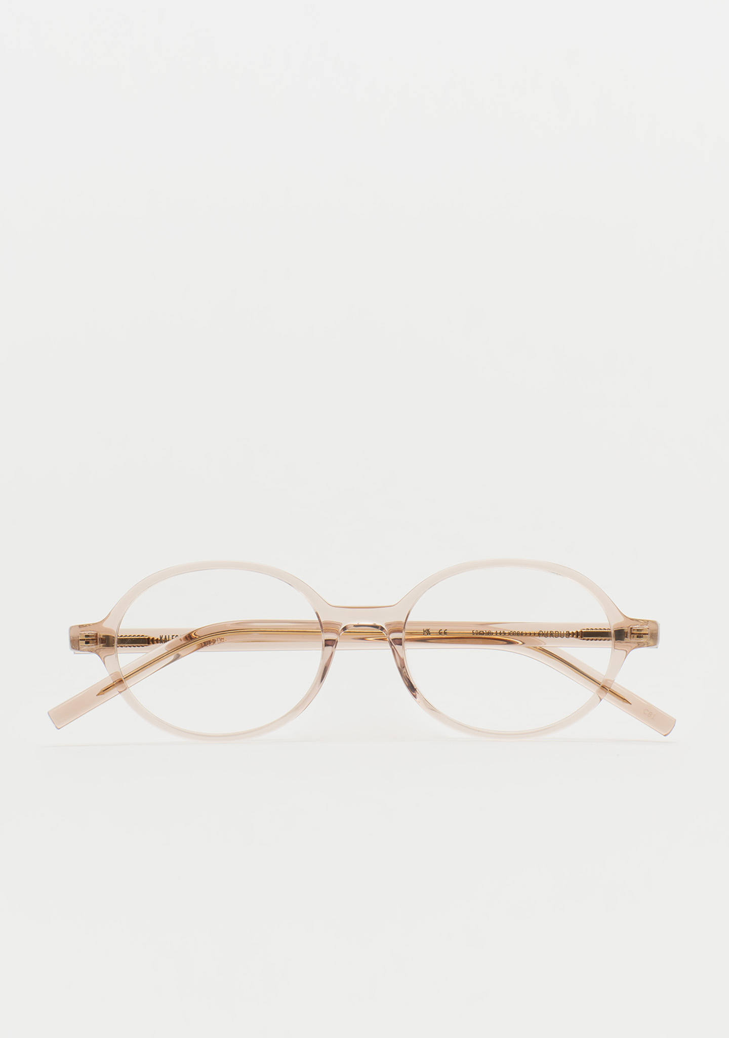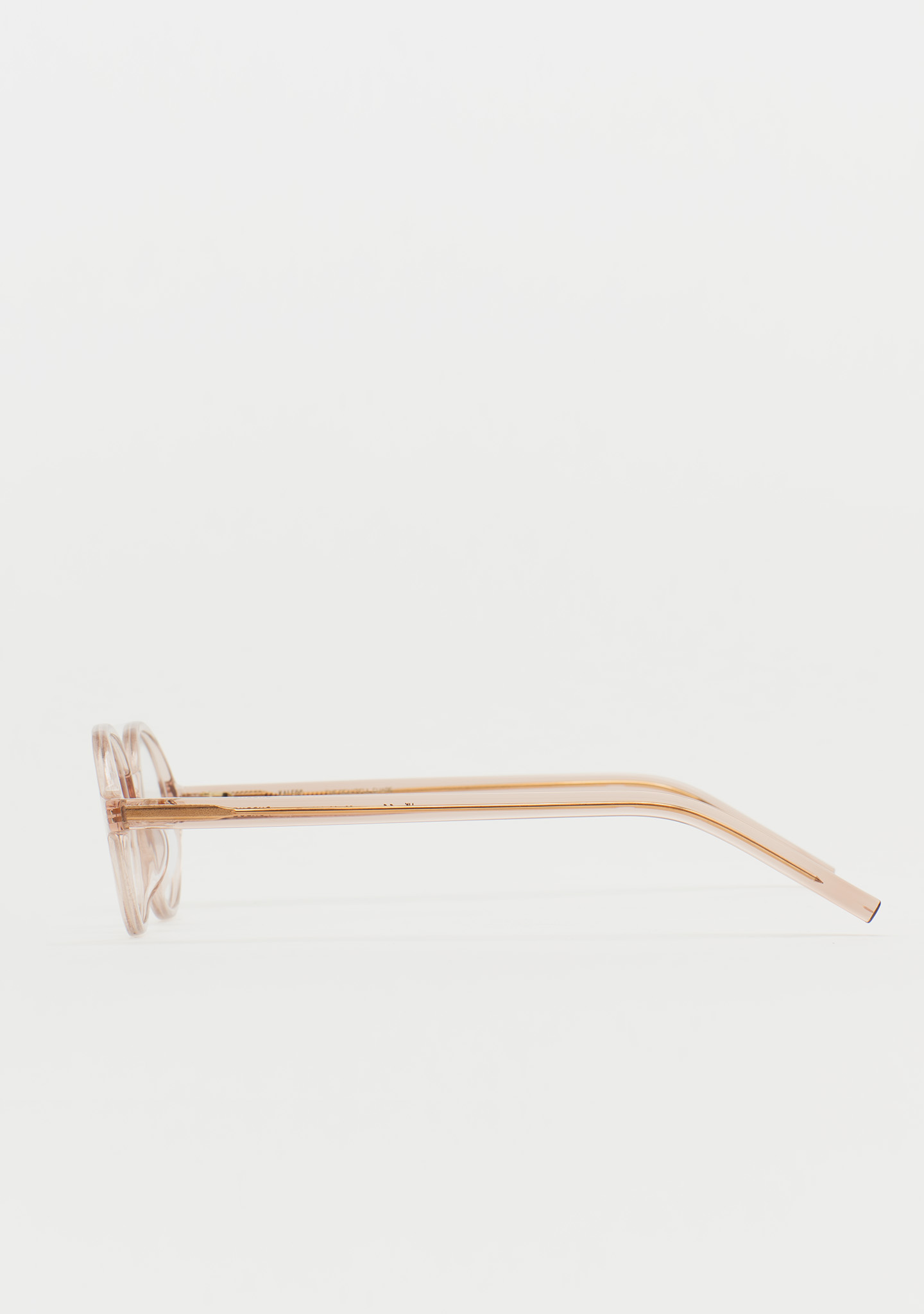 Lunettes de vue de forme ovale. Une géométrie qui crée la tendance. Face et branches en acétate rose clair transparent. Plaquettes en acétate intégrées. Fabriquées à la main.