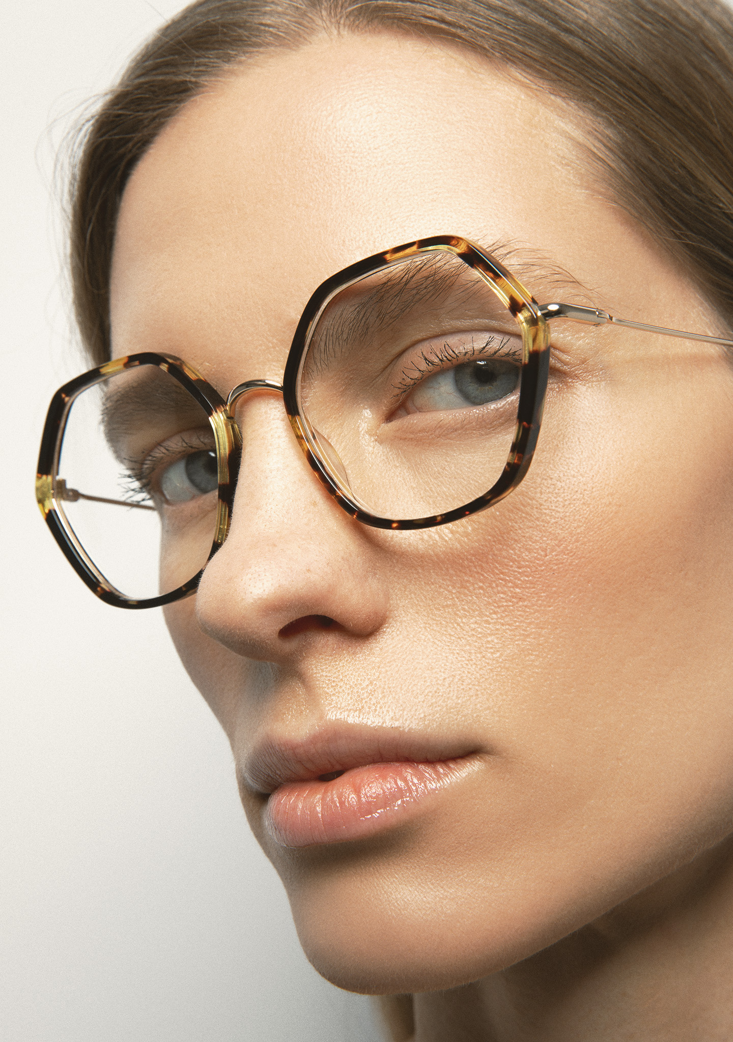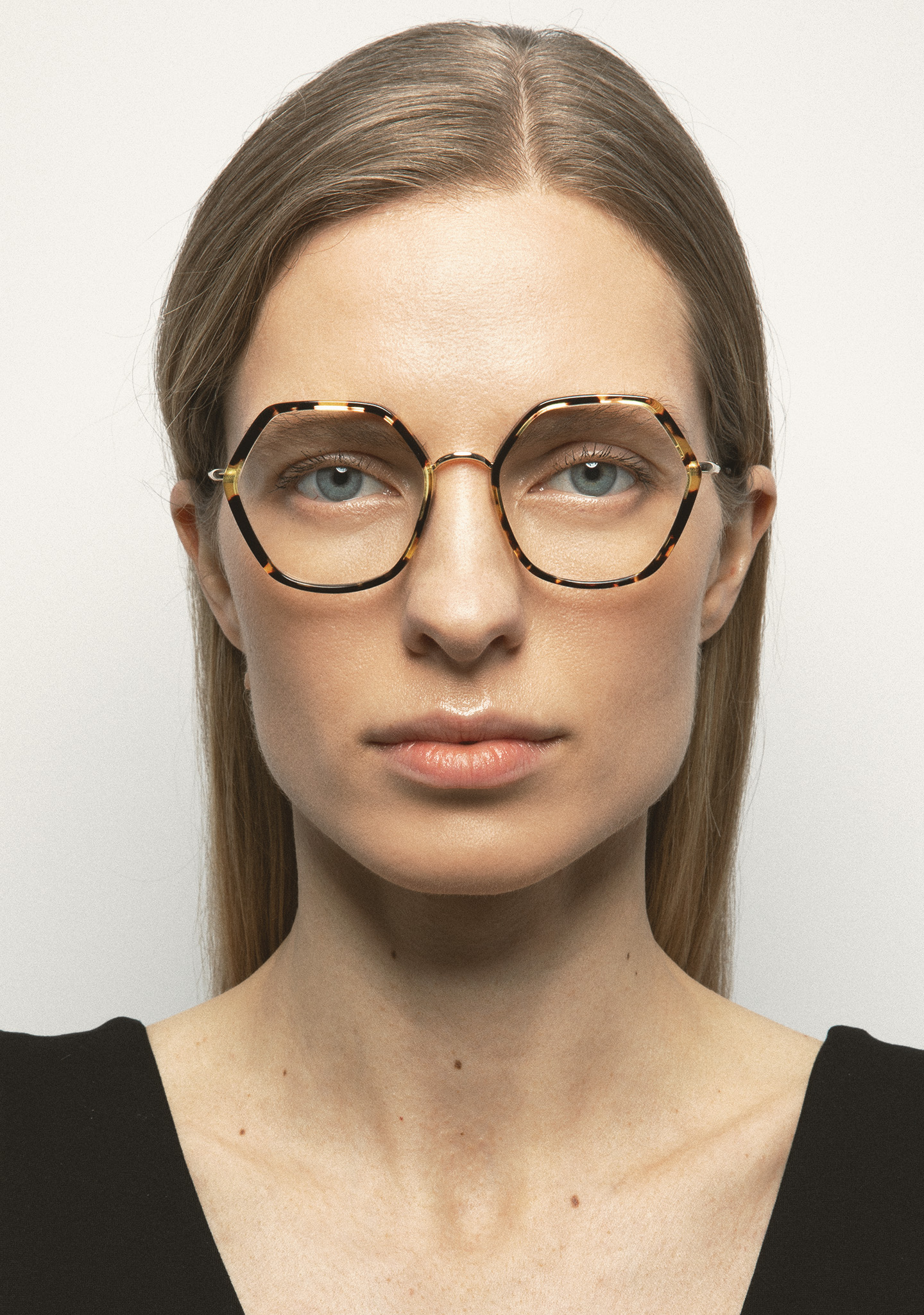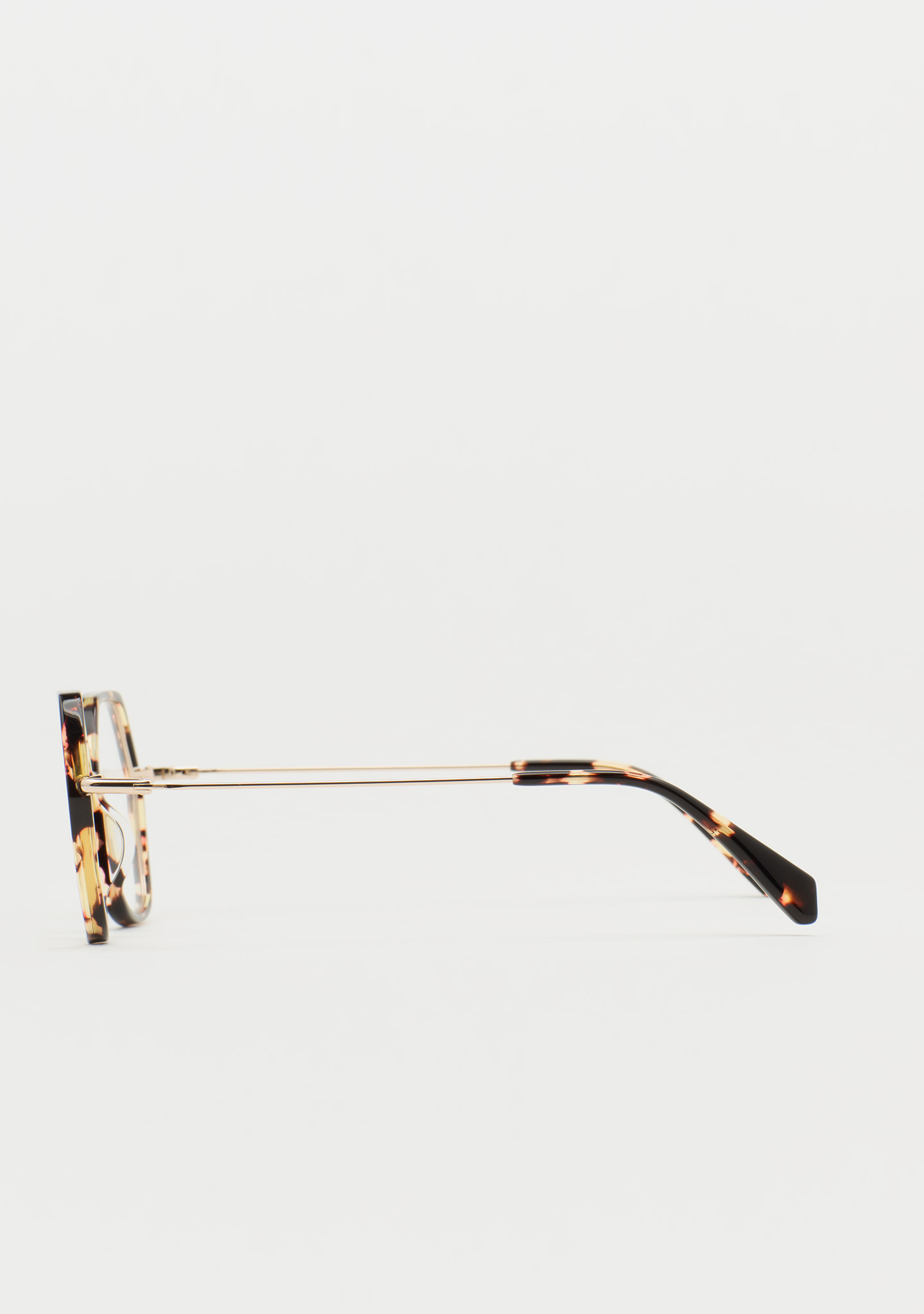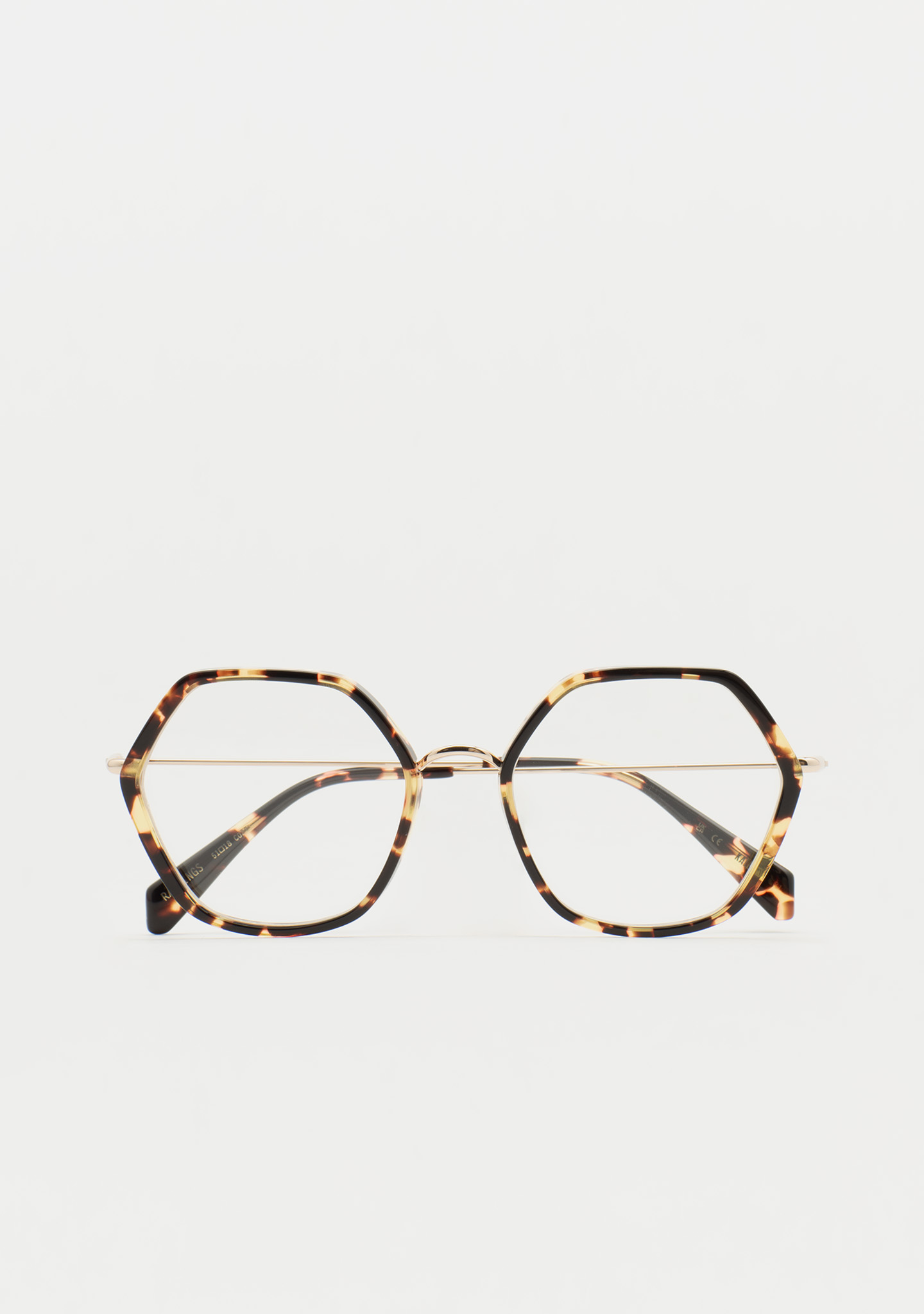 Lunettes de vue de forme hexagonale. Design pensé dans chaque angle. Face avant en acétate havane marron. Structure et pont en acier inoxydable doré. Branches en acier inoxydable avec embouts en acétate havane marron. Plaquettes de nez en acétate intégrées. Fabriquées à la main.
