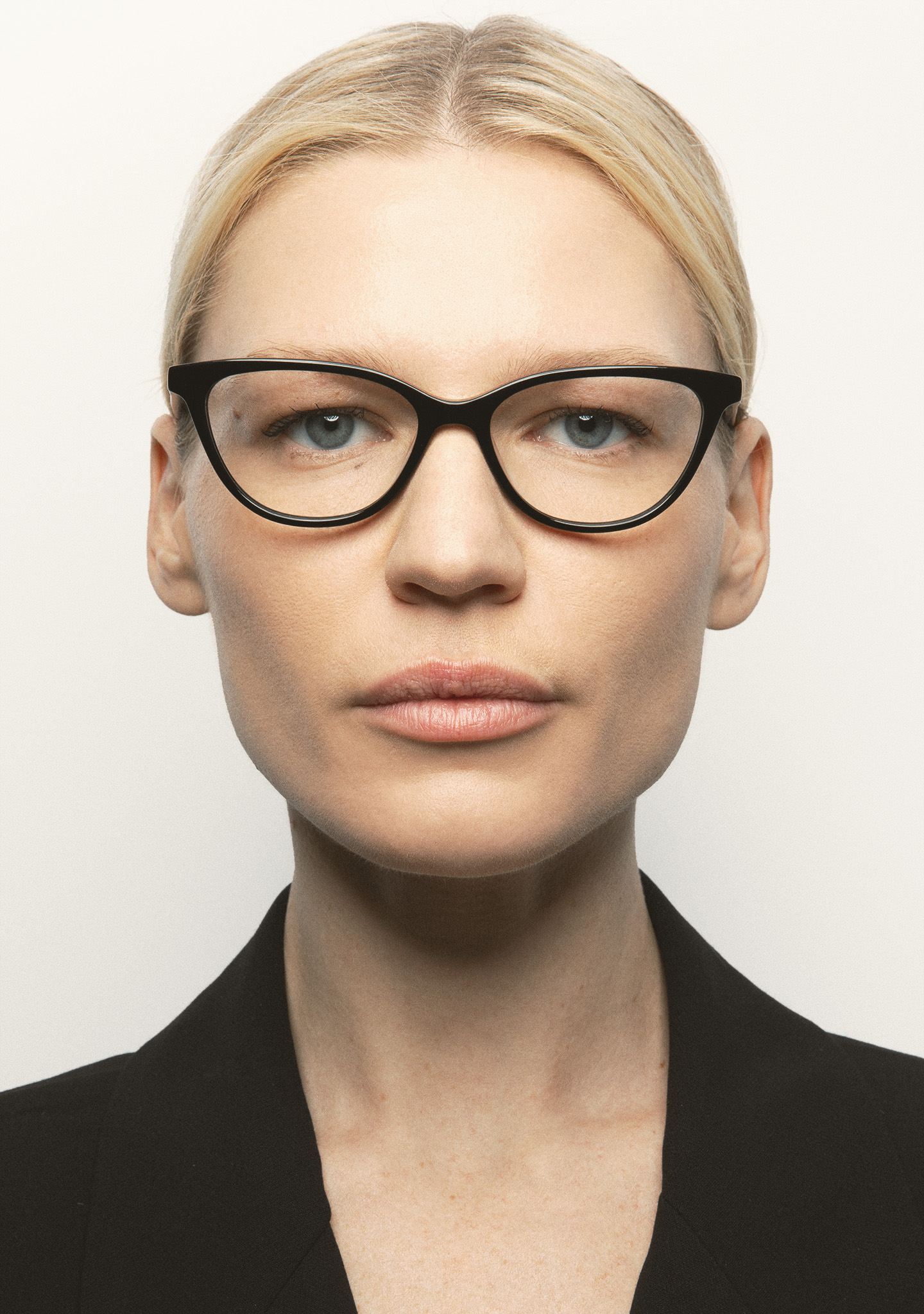 Lunettes de vue de forme Sil-de-chat. Une élégance qui se ressent, sans s imposer. Face et branches en acétate noir. Plaquettes en acétate intégrées. Fabriquées à la main.