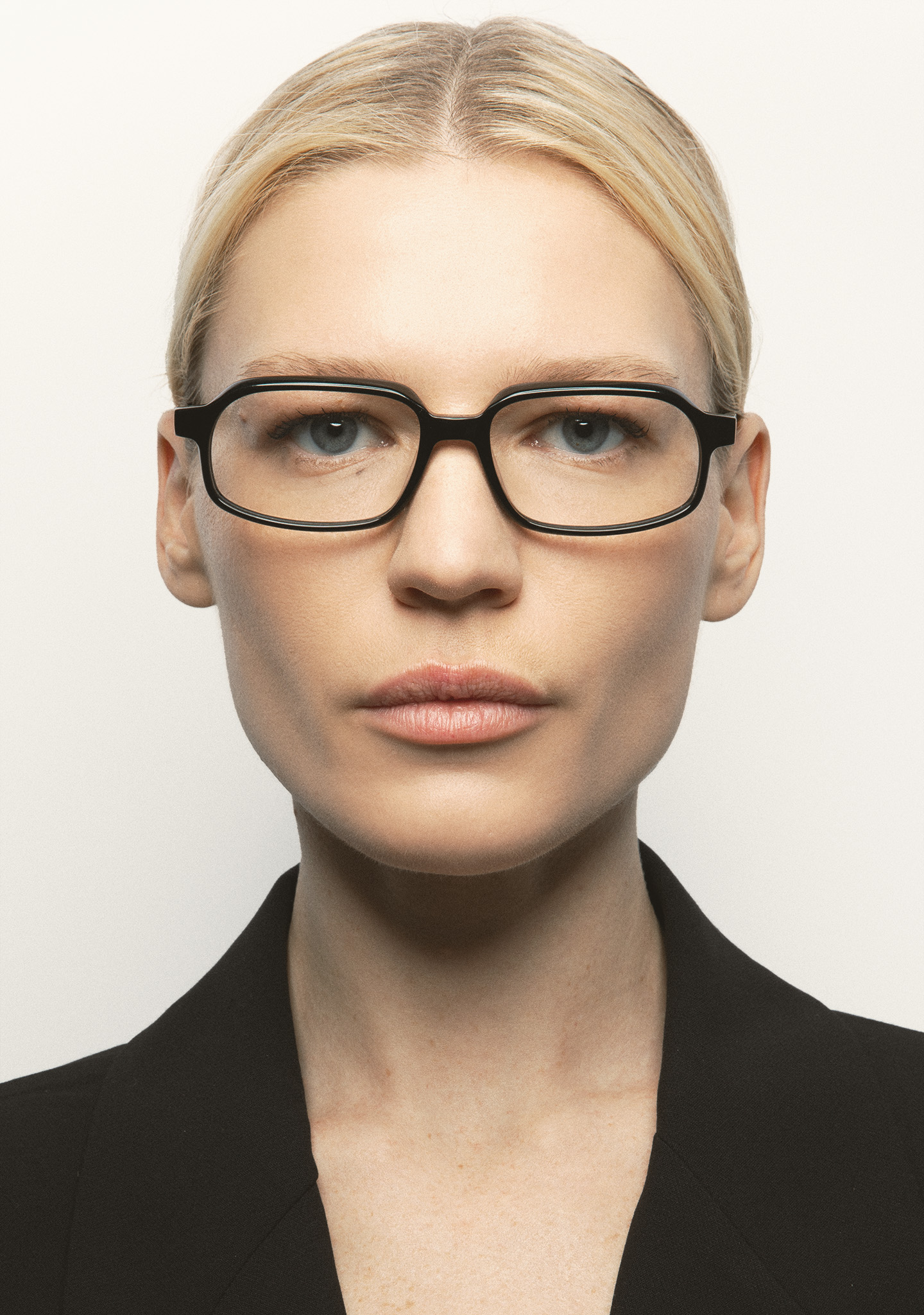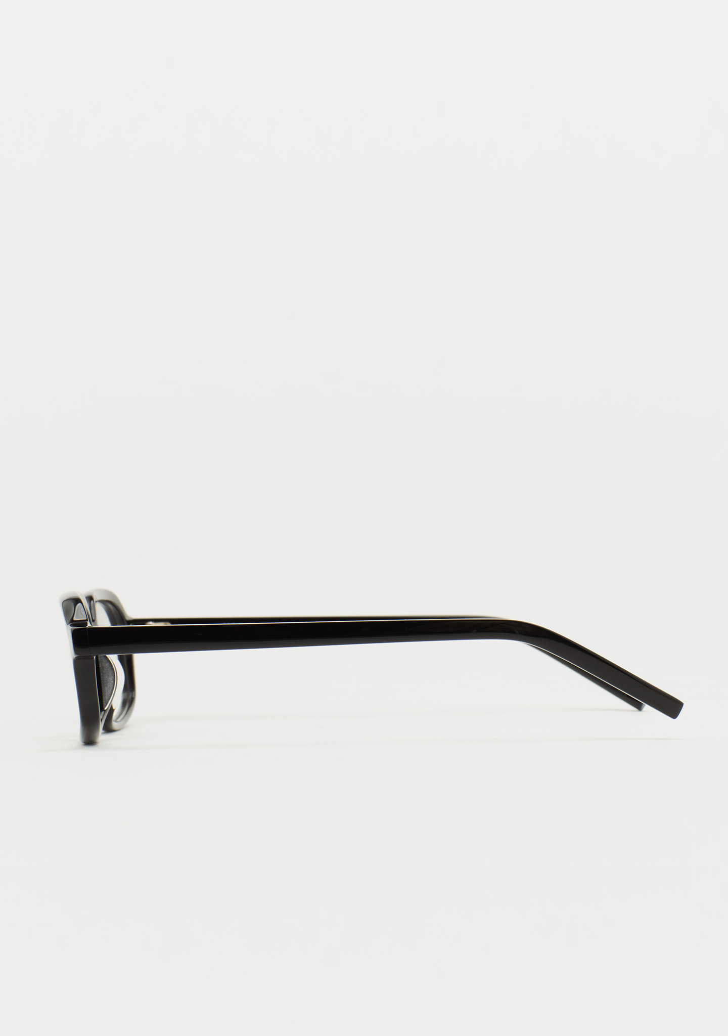 Lunettes de vue de forme rectangulaire. Minimalisme audacieux, détails raffinés. Face et branches en acétate noir. Plaquettes en acétate intégrées. Fabriquées à la main.