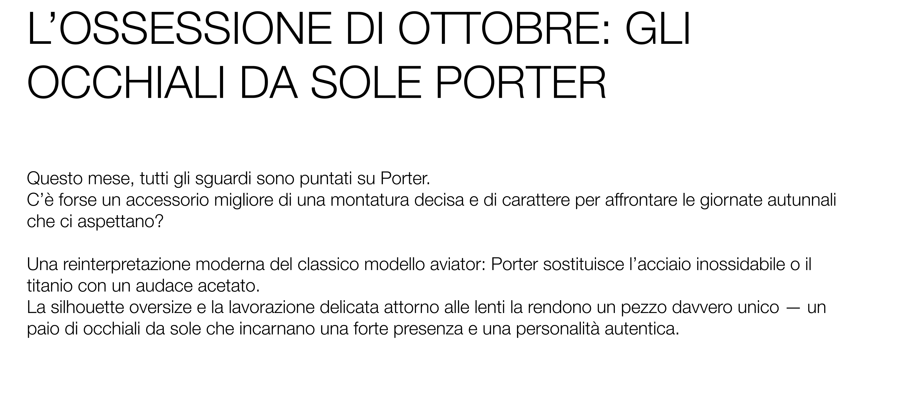 Journal / L’OSSESSIONE DI OTTOBRE: GLI OCCHIALI DA SOLE PORTER